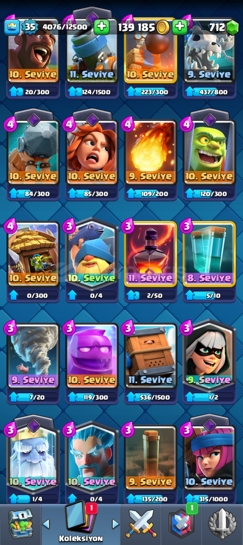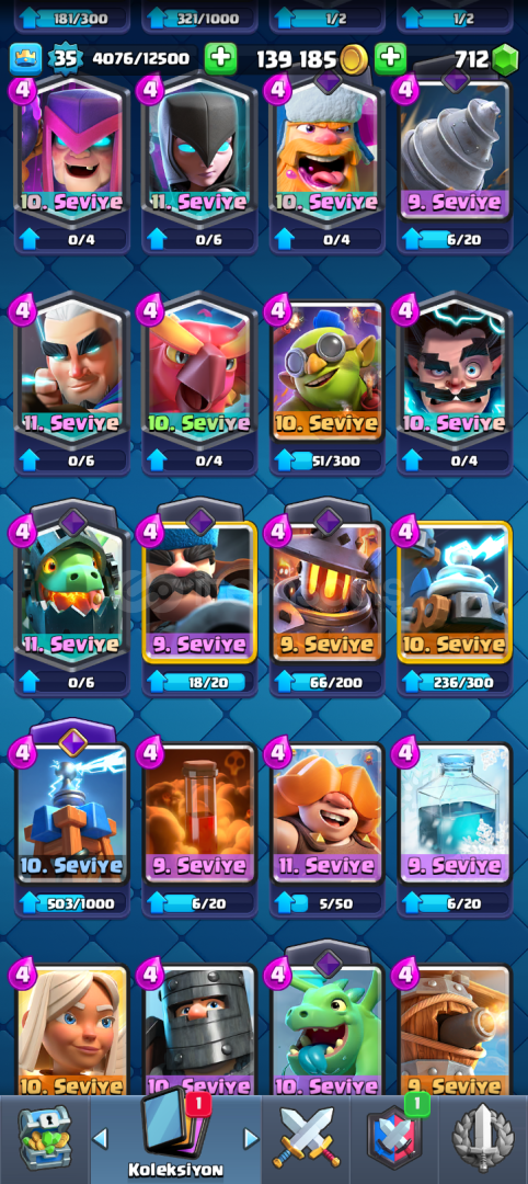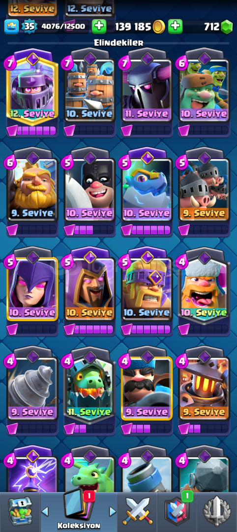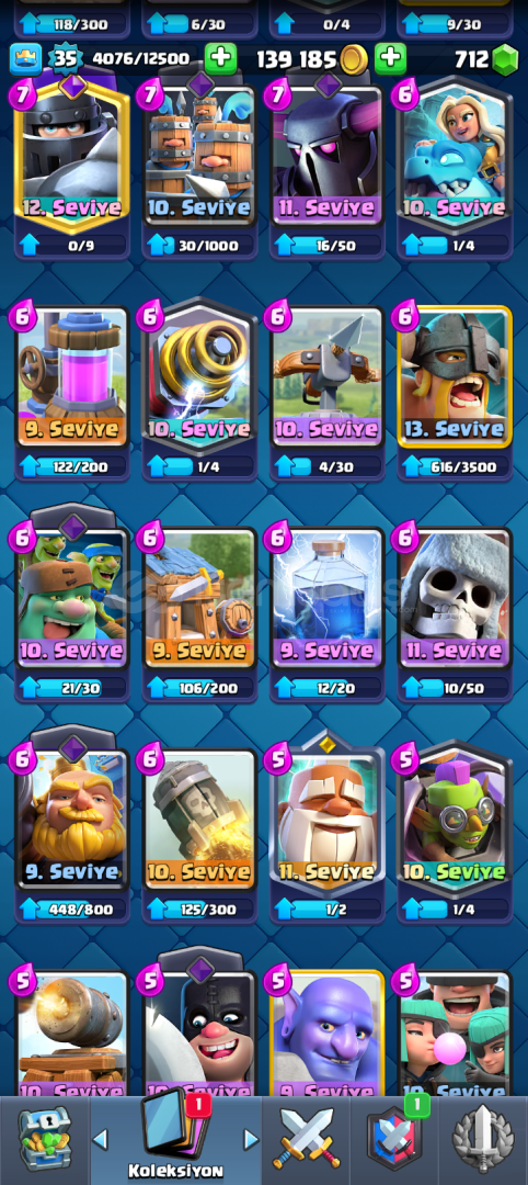 ⭐ MUHTEŞEM CLASH ROYALE HESABI ⭐HESAP 6744 KUPA DIR HESABIMDA 6 TANE EVRİM AÇIKTIR EVRİMİ FULL OLANLAR1)MEGA ŞÖVALYE2)BÜYÜCÜ3)BARBARLAR4)TESLA5)OKÇULAR 6)ELEKTRO EJDER EVRİMİ YARIM OLANLAR 1) CELLAT 3 ADET EKSİK2) CEHENEM EJDERHASI 4 ADET EKSİK3) AVCI 3 ADET EKSİK4)FIRIN 4 ADET EKSİK