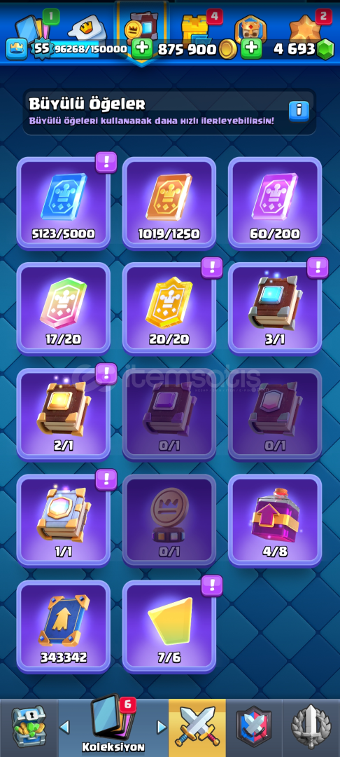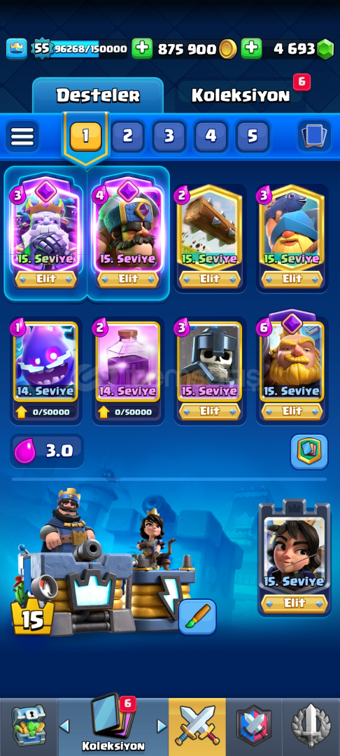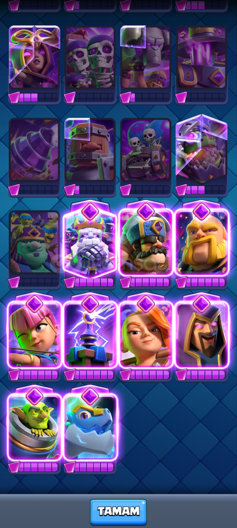 Mükemmel cr hesabı 900.000 altın.4.500 elmas.41 maks kart.Kraliyet devi destesi elitlenmiştir.350.000 elit joker mevcuttur. ( İstediğiniz desteyi maks + maks yapabilirsiniz. )Kitaplar kitabı mevcuttur.İsim değiştirme 1000 taş.9 Evrim açıktır.7 adet evrim parçası mevcuttur. ( İstediğiniz evrimi açabilirsiniz. ) ( Cellat 3/6, Cadı 3/6, Oduncu 3/6, cehennem ejderi 3/6, bombacı 5/6 )Hesapta...