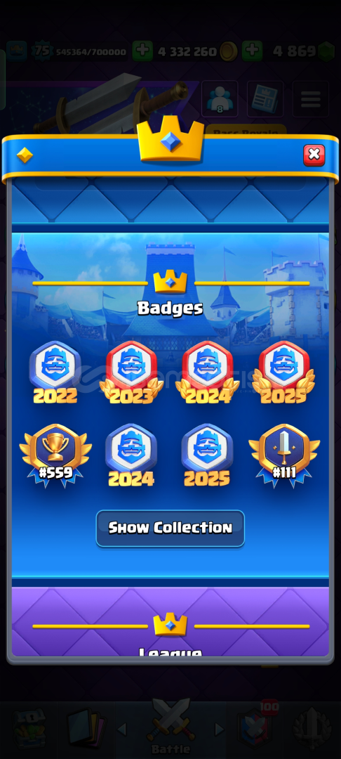 • Dereceli modda Top 500 rozetleri• Global Turnuvalarda Top 100 rozetleri• CRL 2023–2024–2025 20 Win rozetleri• Bugüne kadar CRL’de verilen tüm nadir emojiler hesapta mevcutturBu özellikleriyle Türkiye’de nadir bulunan hesaplardan biridir.• 10× Büyük Mücadele ve 10× Küçük Mücadele tamamlanmıştır• 4.300.000 altın bulunmaktadır• Koleksiyon hesab&#...