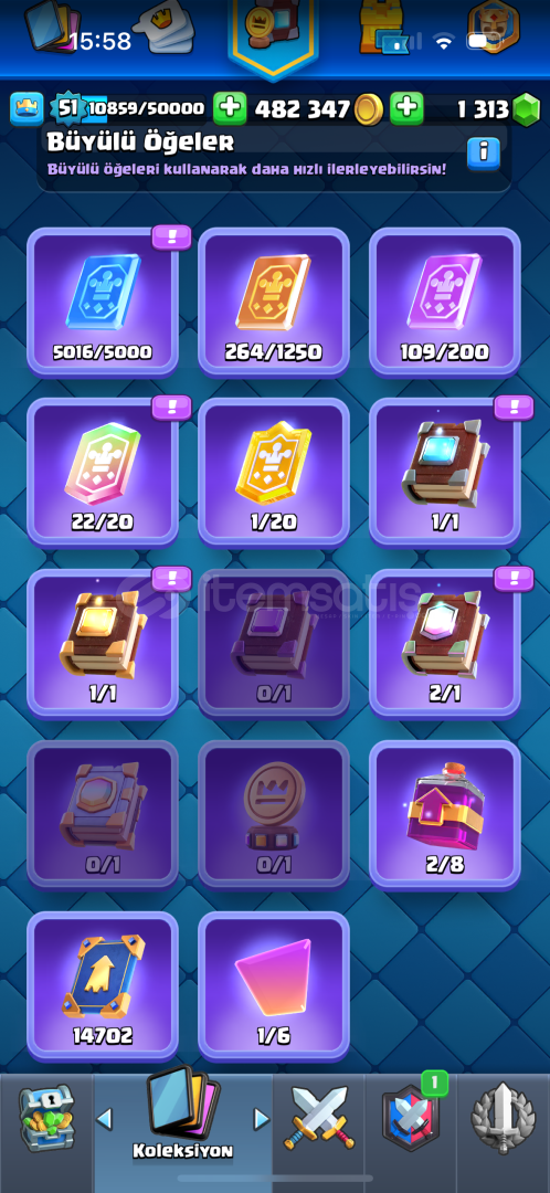 hesabin fiyati degerinin tamamen uygundurBircok kitap mevcuttur117 kart vardir51 seviyedir34 adet 14 level kartEvrim acisindan yalniz yarasa evrimi mevcuttur8364 kupasindadir1313 adet tas ve482.000 altin mevcuttur