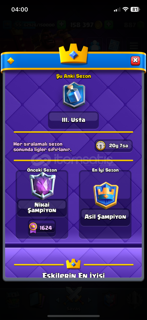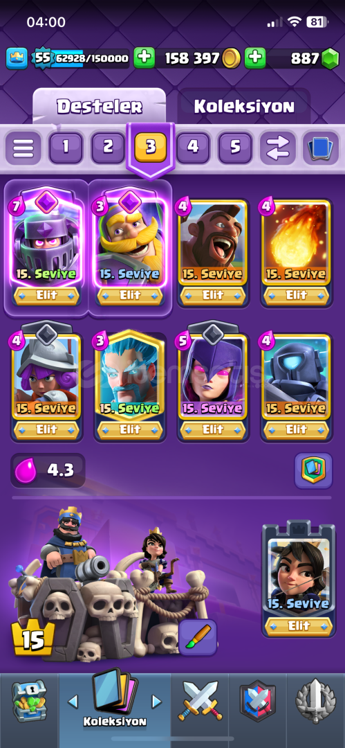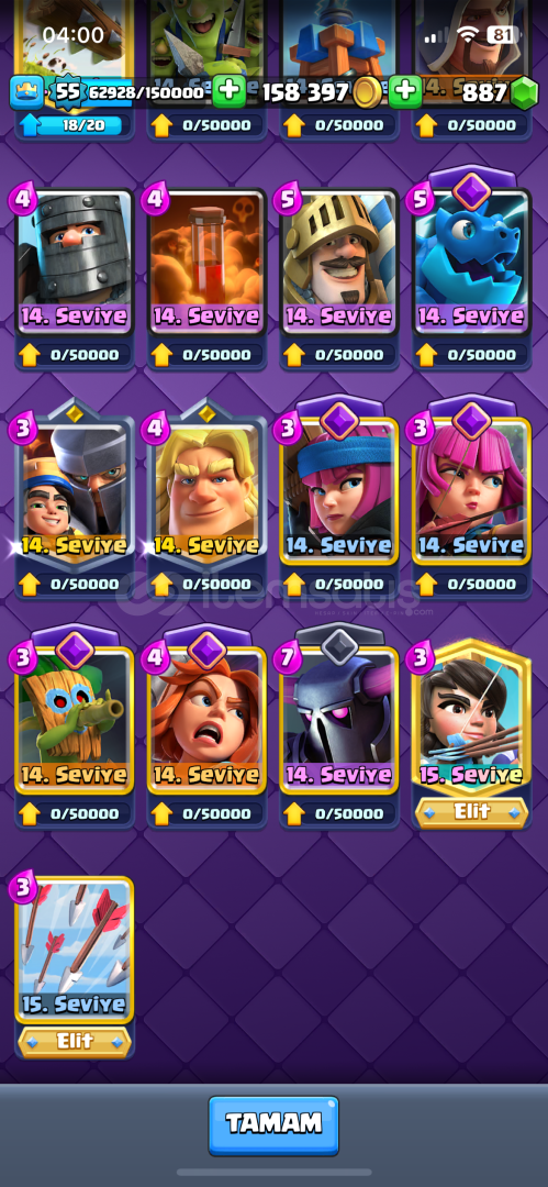 14 evrim 11 elitvardır nihaiye kasılmış 55 level artık oynamadığım için satıyorum