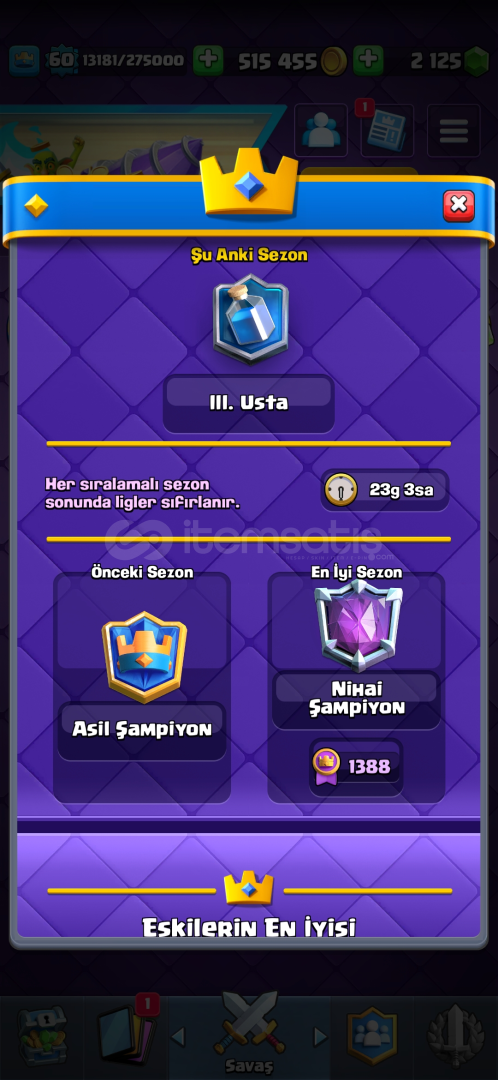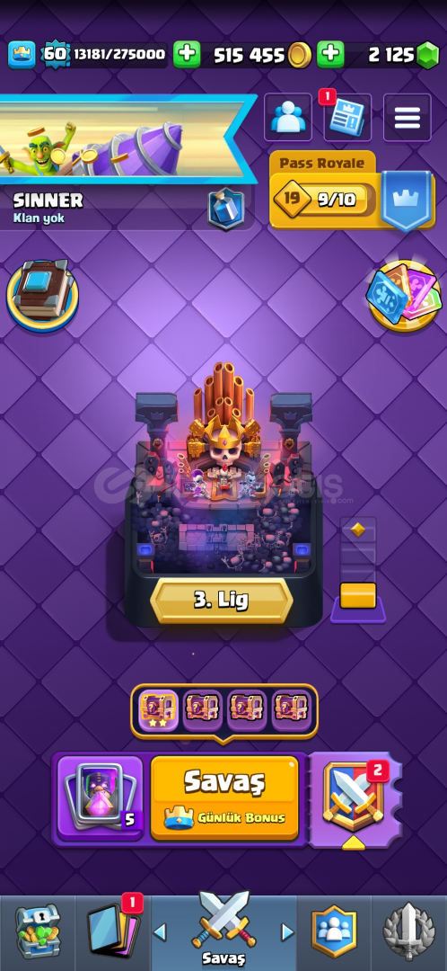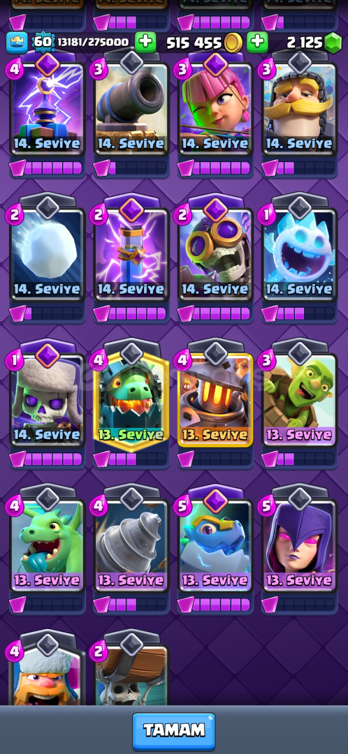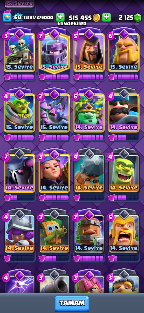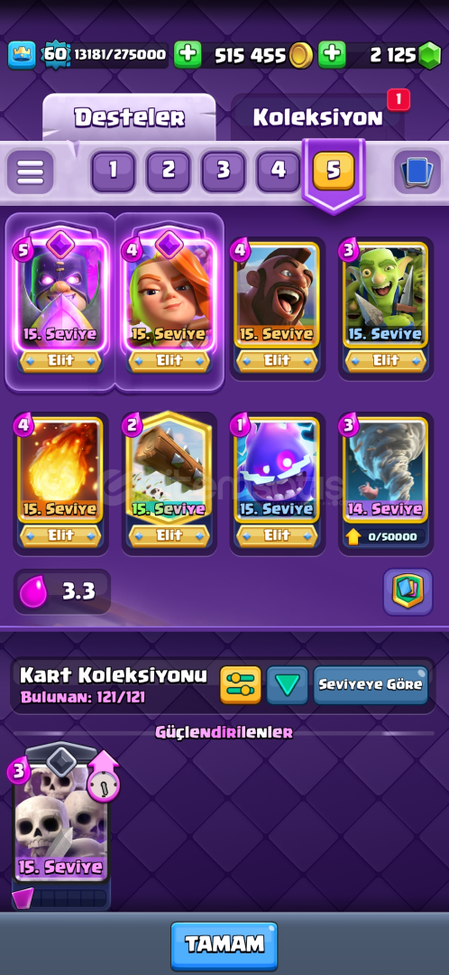 Hesapta 21 adet kart elit seviyedir (15 seviye)