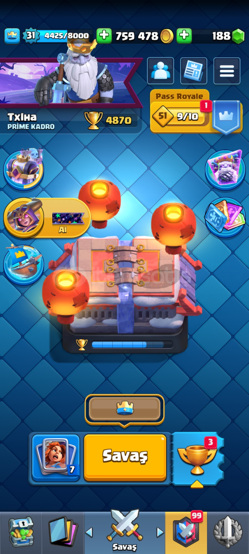 4900 civarı kupa 6 evrim +sovalyede ve dart goblinin yarısi dolu İndirim mevcutturİçinde 180 taş vardır nolur ali...