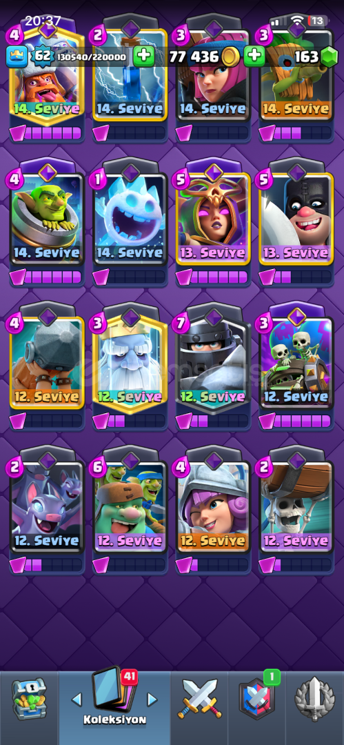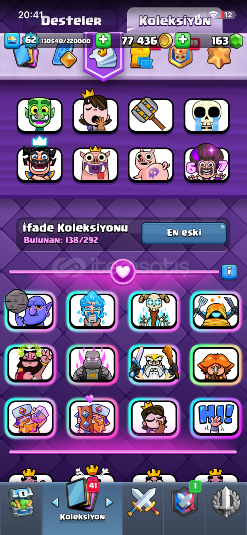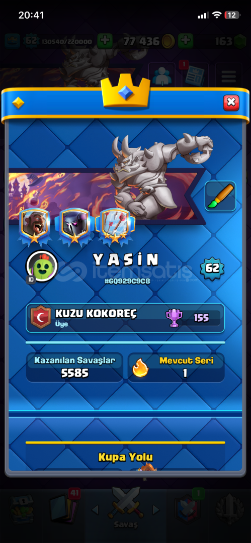 OYUNUN GÜNCELLEMELERİNDEN BIKTIĞIM İÇİN SATILIK KAFADAN 3000 YATIRMIŞIMDIR ZATENNİHAİ HESAP18 EVRİM VAR AÇIKMEZARLIK VE KRALİYET DEVİ MAXTI4 ESKİ PASS ROYALE AÇIKTAM TAMINA 138 EMOJİVALLA UYGUNA BIRAKIYORUM İLK GELEN ALIRaktif olmassam iletişim @yasiin_gokce