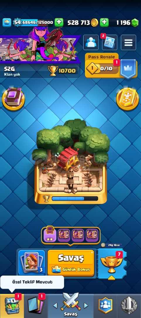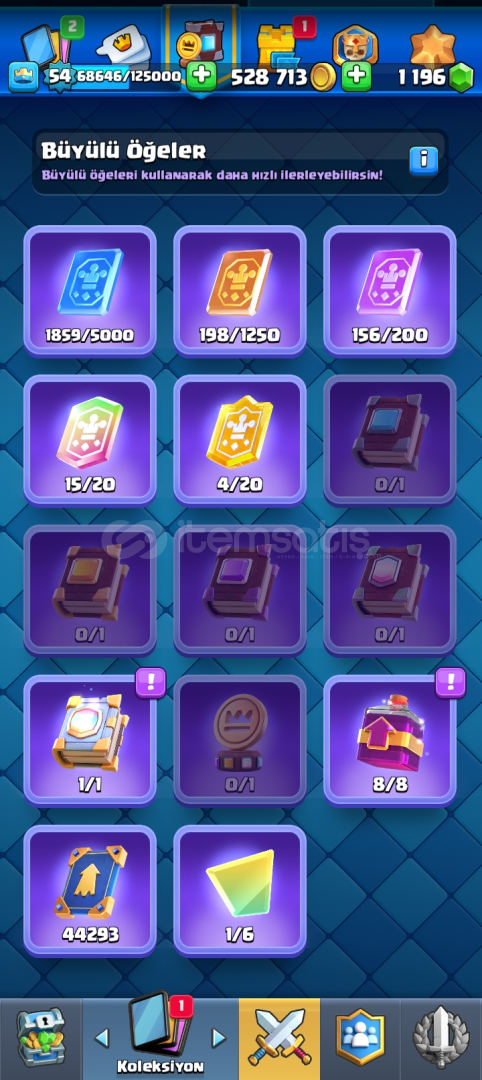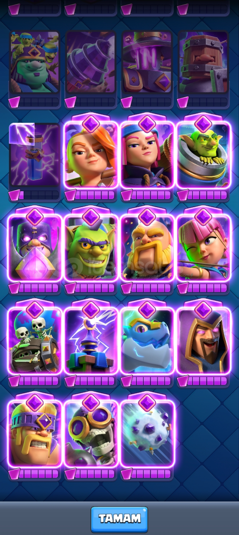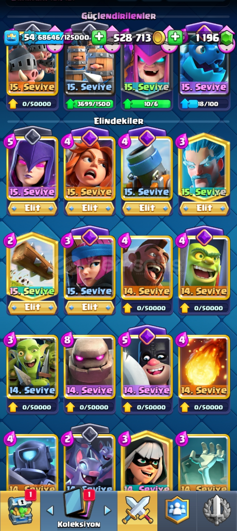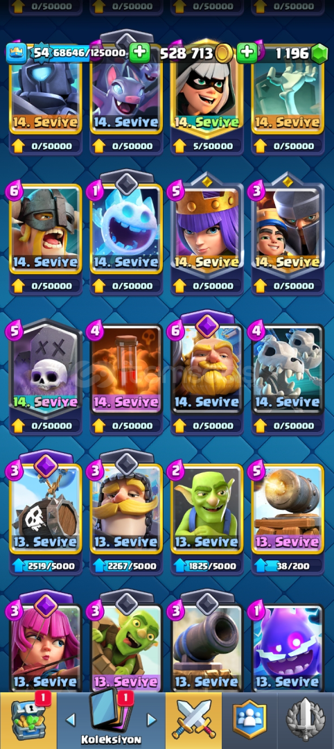 Hesap kasilmalik içinde bol emoji var 1k civari elmas var çoğu kartı 14 lv yapa bilirsiniz yaninda coc hesabi hediye 10lv belediye binali ve hesapta bol evrim varVe 54lv hesap