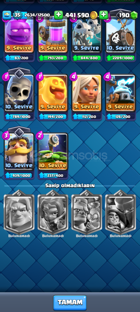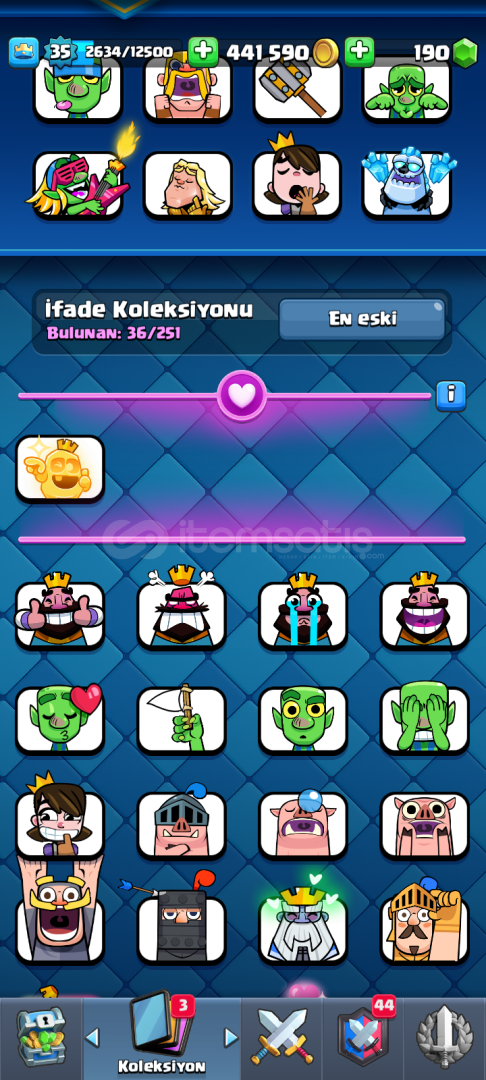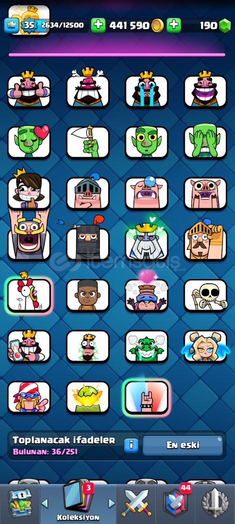 7k kupa var 5 tane evrim ve pass royale actım 2 tane para ile satılan emojim var ve onun yanında toplamda 30 a yakın emojim var