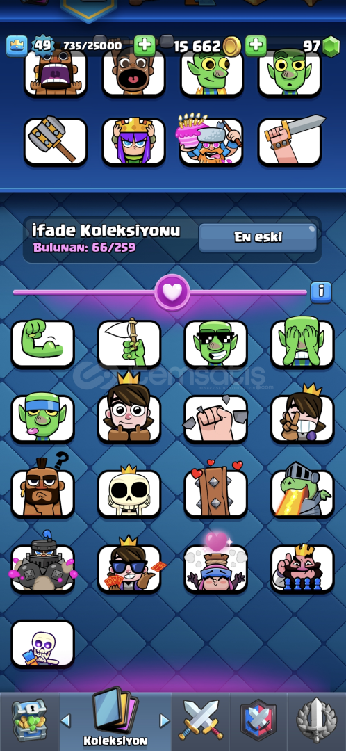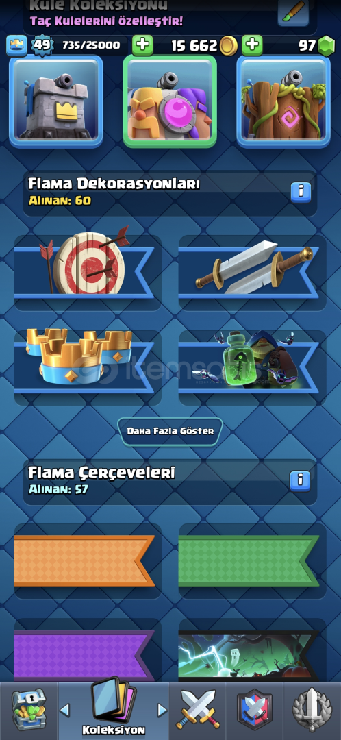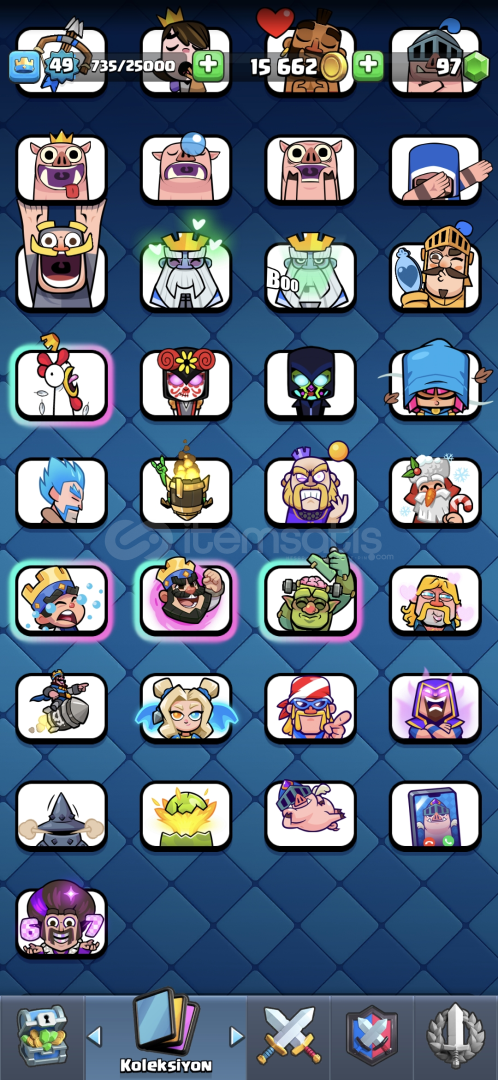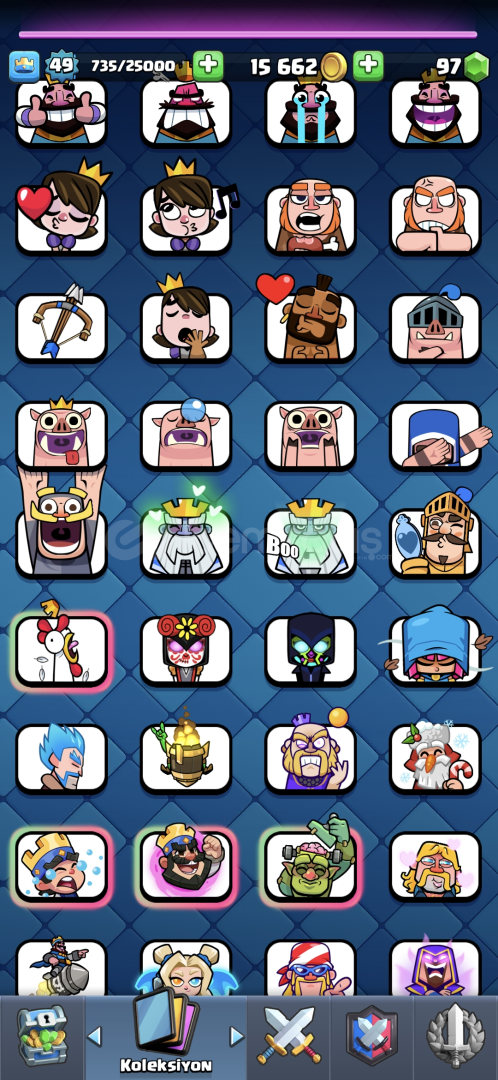 66 emoji 60 flama 56 flama çercevesi. 92 rozet var 121 karakter ve 12000 kupa
