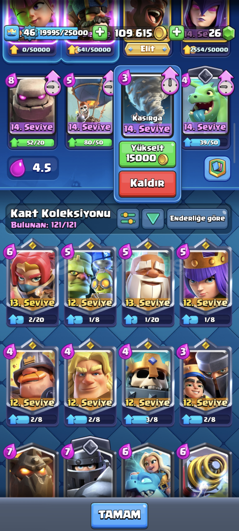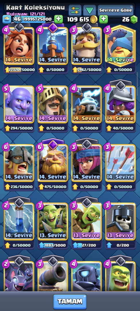 14 lvl birçok kart vardır. Oyundaki tüm kartlar açık tüm şampiyon kartlar mevcut. Pazarlık vardır