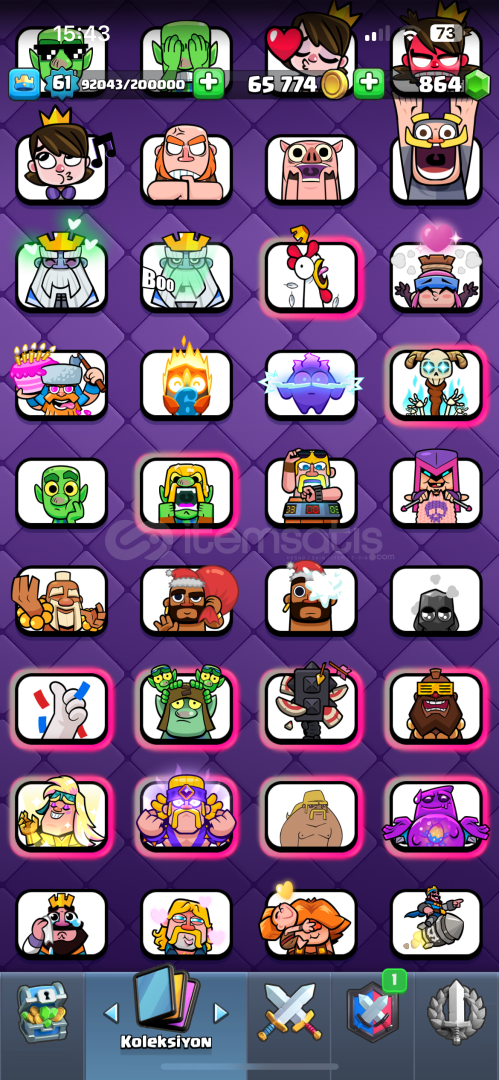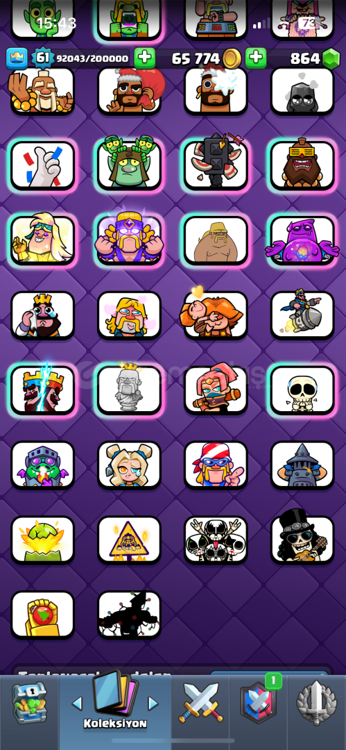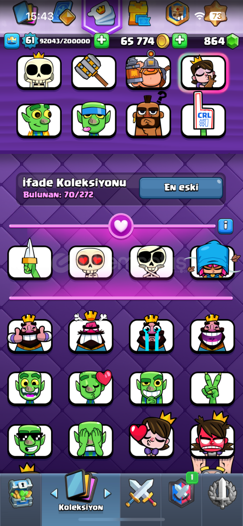 10000+ kupadamax asil şampiyona çıkıldı10 adet güzel evrim var ve 4 adet de ekstra evrim parçası var15 adet şampiyon joker kart var4550 adet sıradan joker -133 adet ender- 17 adet destansı joker kart varbir çok kart 13 seviye 14 15 16 seviye kartlar da var (ayrıca şu anda 13 seviye kartlar yükseltilebilir durumdahesapta 864 elmas var70 adet emoji youtuber emojileri de var ve toksik emojiler de var1000 taş de...