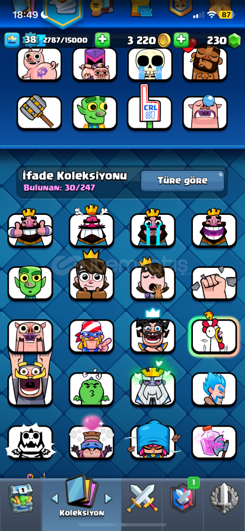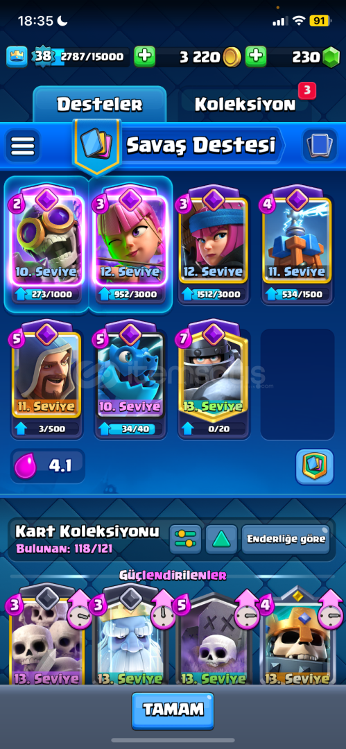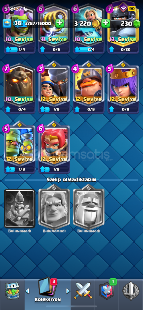 Hesap +2 seneliktir3 karakter açık degildir7 tane evrimli karakter açıktır+7000 kupadırKule birlik seviyesi 13’dürİcloud hesabına baglıdır