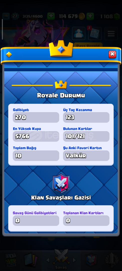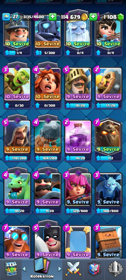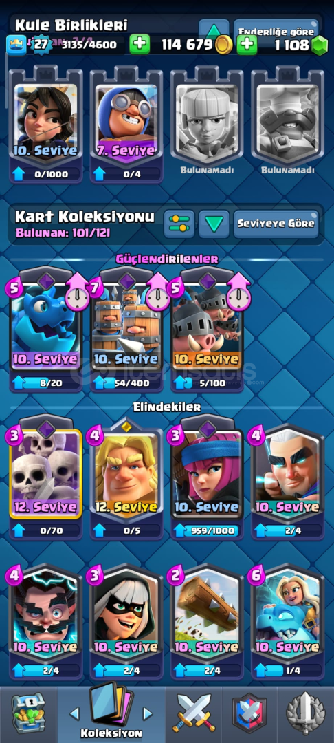Clash Royale hesap5700 kupa18 emoji101/121 kart1000 taş bulunmaktadırMail değişenİsim kartı bulunmaktadır