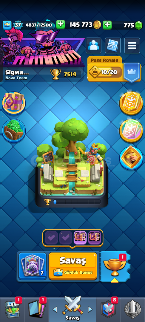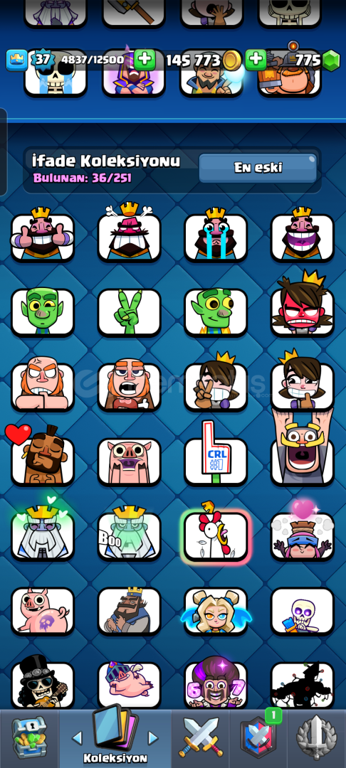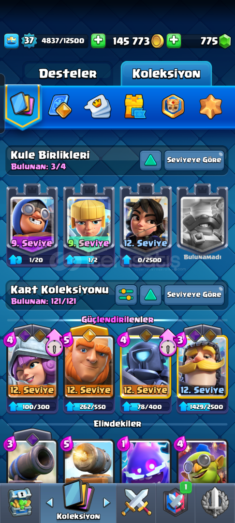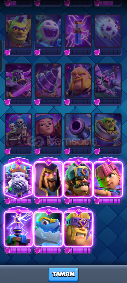 Bütün karakterler var sadece aşçı şef Birliği kulesi yok 700 den fazla elmas var 7 tane evrimli karakter var