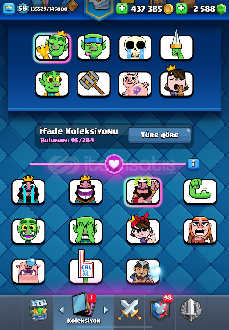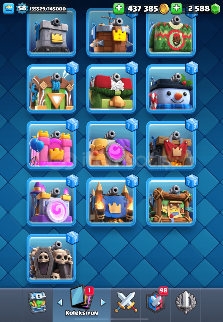 Hesapta kraliyet turnuvası sıralaması mevcuttur 59 seviyedir ve 10 adet 15 45 adet 14 85 adet 13 seviye kart vardır 95 emoji 198 flama mevcuttur oyunun en nadir emojilerinden olan kupa öpen goblin mevcuttur. clash of clans brawl stars gibi diğer oyunlarda da bağlı olduğu supercell ıd sebebiyle sağlam hesaplar vardır yıldız shelly mevcut ve 4 sene öncesinin en iyi hesaplarından biri vardır şuan seviyeler ve ...