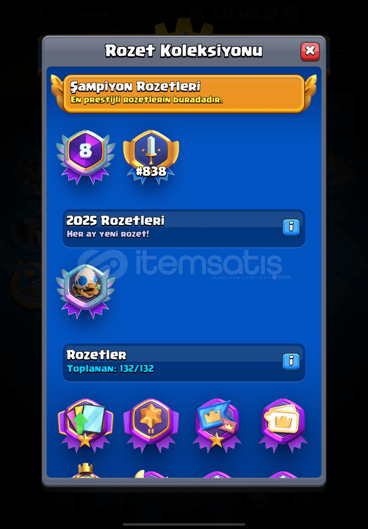 Hesapta kraliyet turnuvası sıralaması mevcuttur 59 seviyedir ve 10 adet 15 45 adet 14 85 adet 13 seviye kart vardır 95 emoji 198 flama mevcuttur oyunun en nadir emojilerinden olan kupa öpen goblin mevcuttur. clash of clans brawl stars gibi diğer oyunlarda da bağlı olduğu supercell ıd sebebiyle sağlam hesaplar vardır yıldız shelly mevcut ve 4 sene öncesinin en iyi hesaplarından biri vardır şuan seviyeler ve karakter sayısı mevcut duruma göre düşük kalabilir clash of clansta 14 belediye max hesap vardır şampiyonların skinleri de mevcuttur