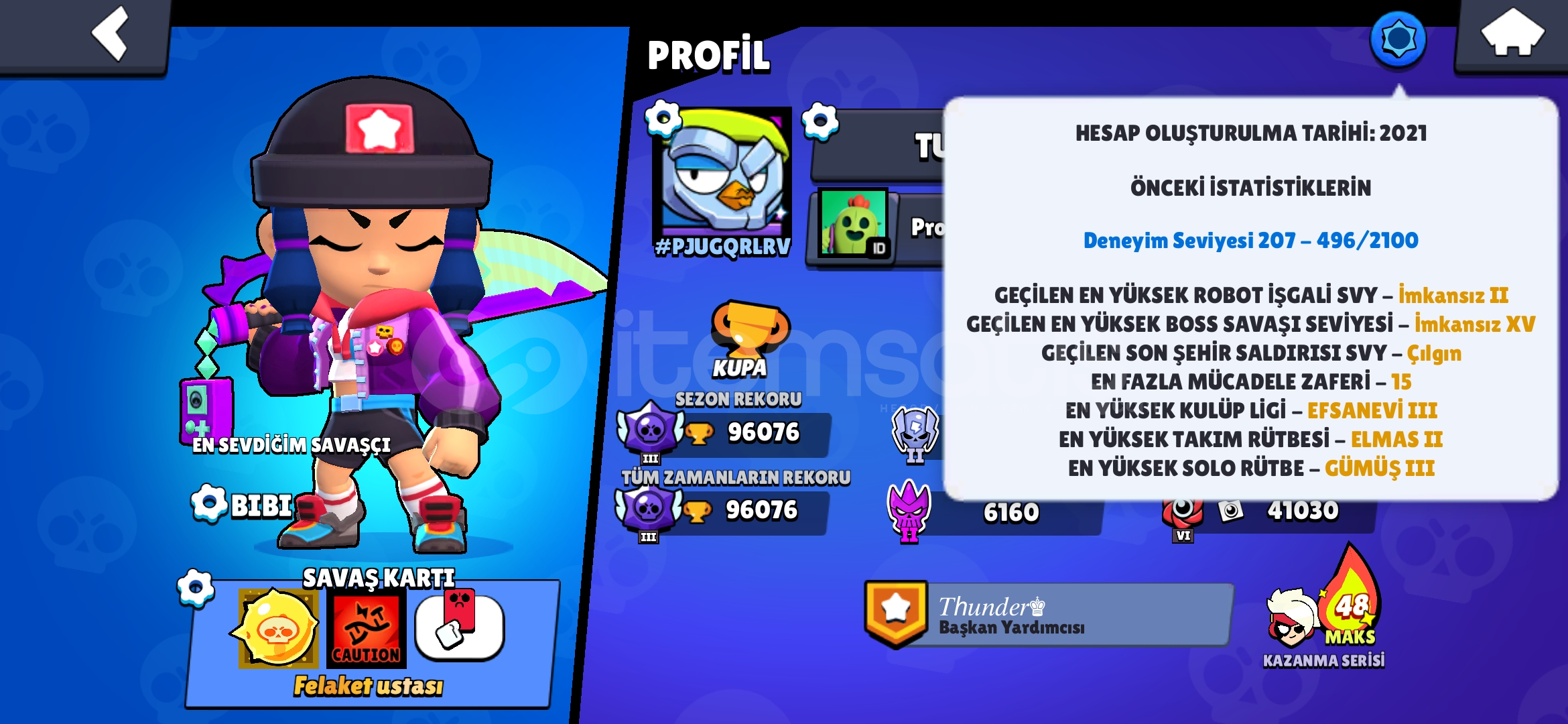 25000'den 20000'e indirdik yarın eski fiyata dönecekPazarlık açıktır fiyat düşebilirClash Royale Hesap SatılıkSeviye: 55Kule Seviyesi: 15Elit Kartlar: 8 adetKart Seviyeleri: 13 adet 14. seviyeKupa: 15.000Lig: 4. Lig, aşamalı gelecek sezonda açık duracakTüm Kartlar: MevcutturEvrim Sayısı: 1796k göktaşı 1 bs hesabı91 ender 103 süperender 113 destansı 6 gizemli 11 efsanevi 4 hiper&...