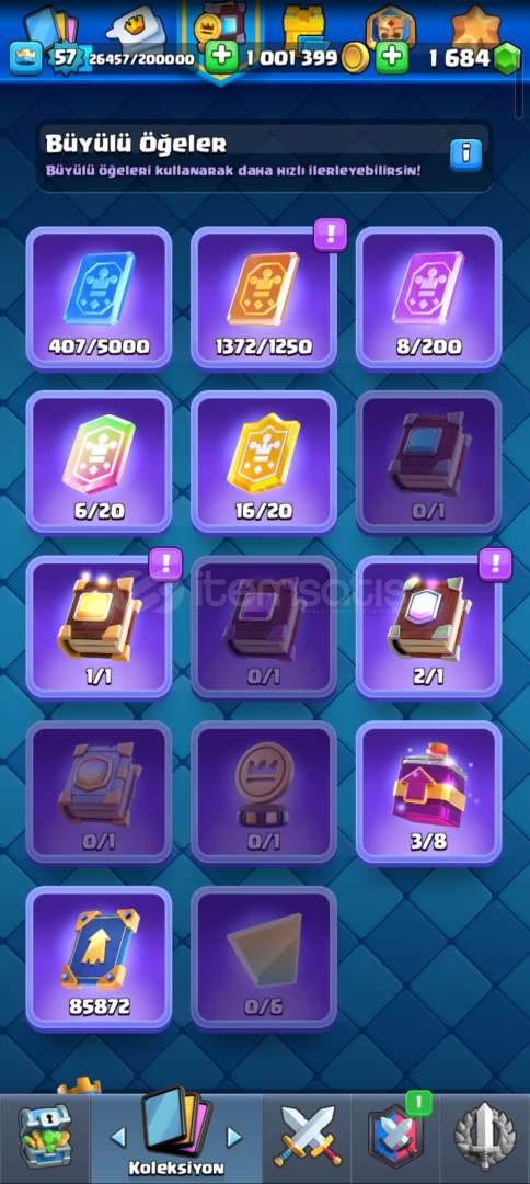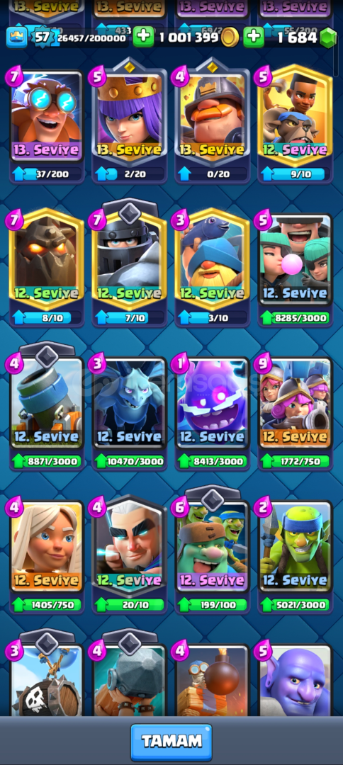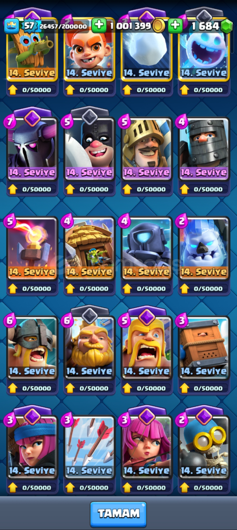 Hesap doludur14 evrim mevcut1m altın1.6 k elmas Nihai sapmiyon 1900 kurdeleDopdolu hesap11 elit kart 84k elit joker kart mevcutturHesab mail değişimi yapılır Hesap korumasi aktifCoc hesabi da 13 seviye belediye mevcutturKahraman kostümleri de vardırAktif rpsi açık
