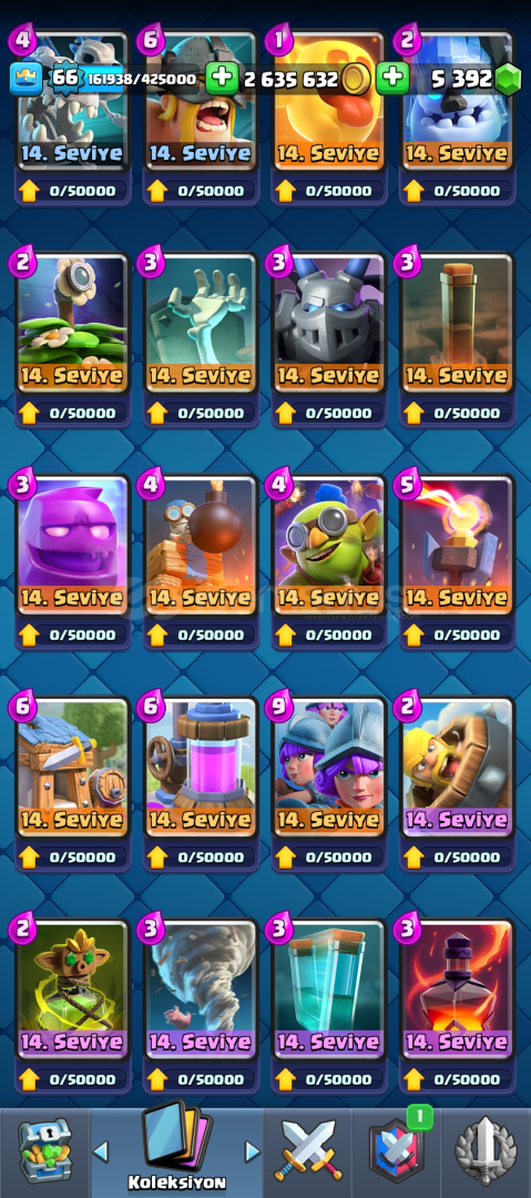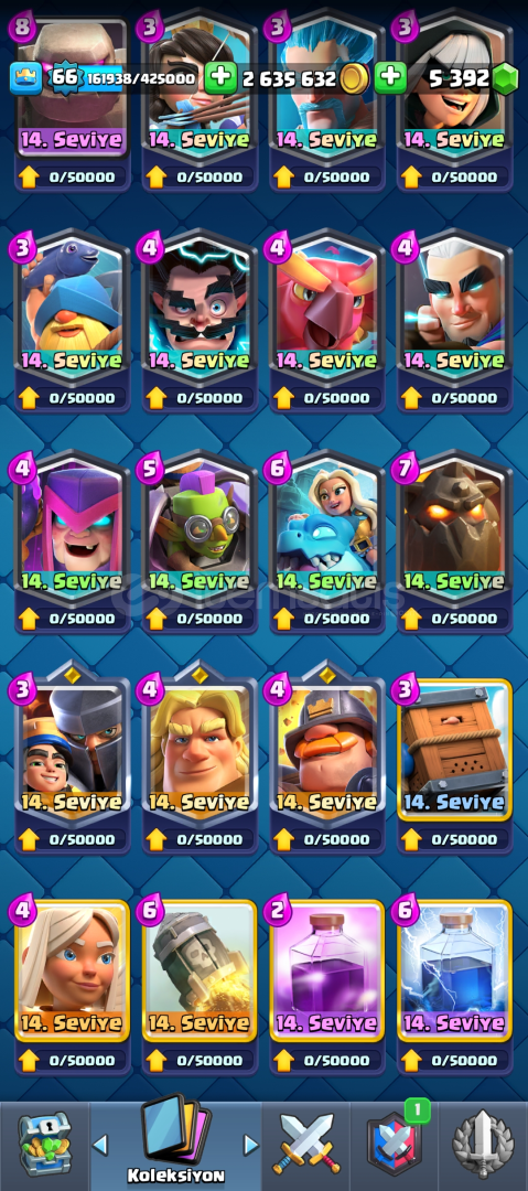 Clash royal 66 seviye 11350 kupaHayday 101 levelClash of clans 13 level belediye binası