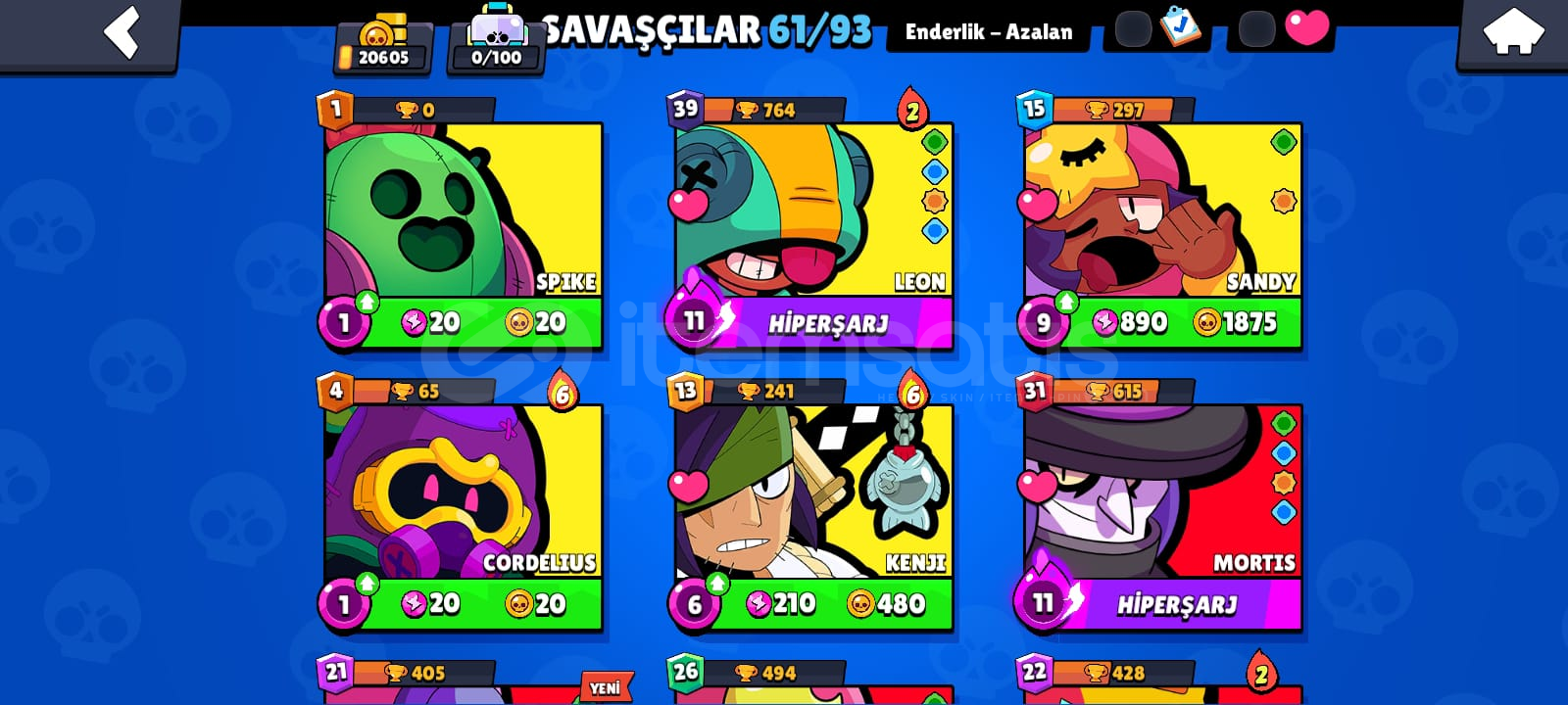 116-117 kostümlü efsanavi kostümden tut hiperşarj kostüme kadar kostüm mevcuttur   30.000 altın ve 300 elmas mevcuttur   61 karakter 5 efsanevi 17 hipersarjlı karakter 20.000 kupalı 2020 brawl stars hesabı