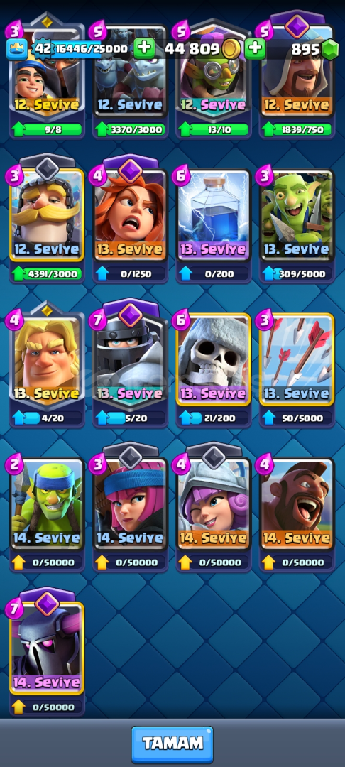Hesapda 14 seviye tam 5 tane kart vardır evrim olarak : pekka, mega şövalye, elektro ejderha, tesla, dart goblini, barbarlar, bombacı, büyücü ve 3 tane evrim joker parçası var kitaplar konusunra zaten gayet bol ve SeeOk ve Hypnos emojileri hesapda var bu fiyata tek.