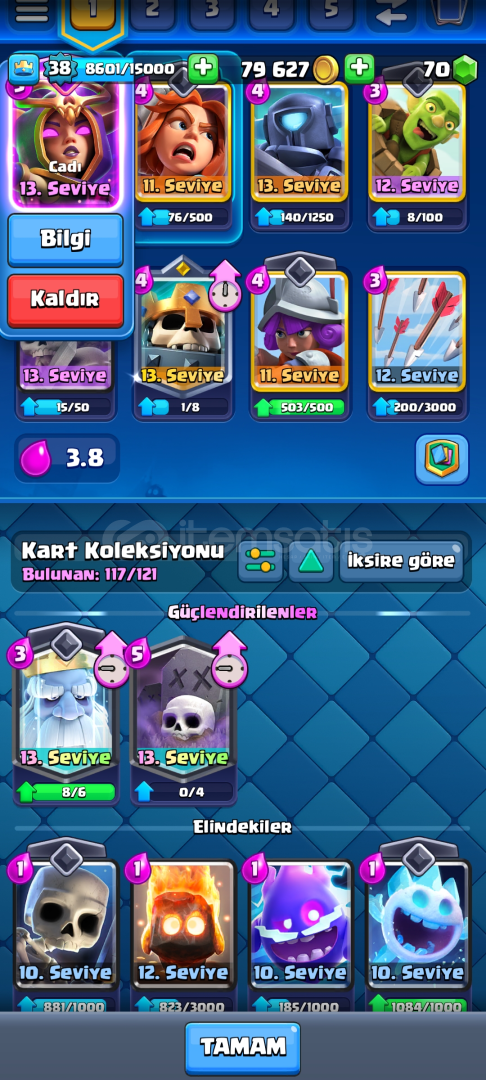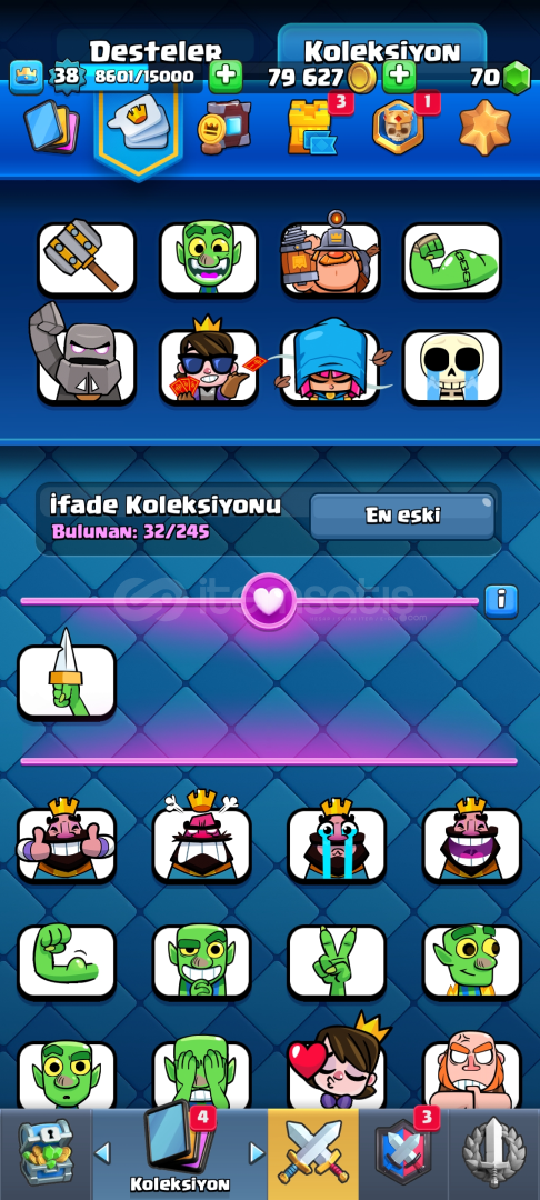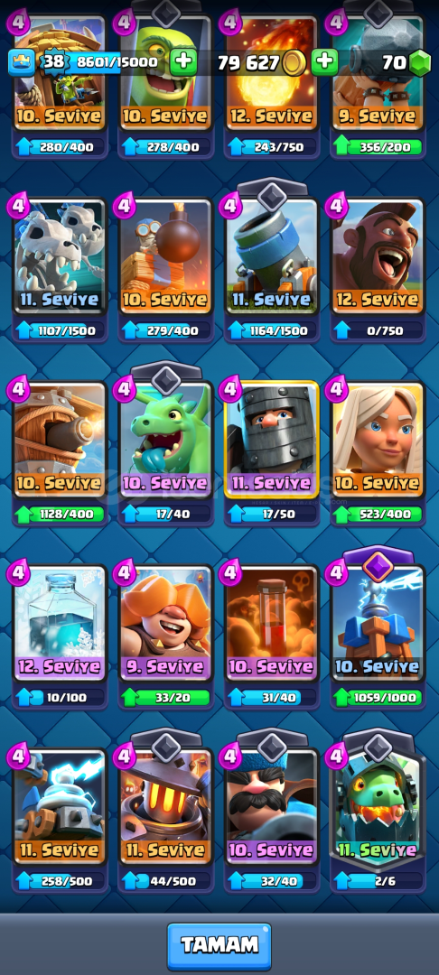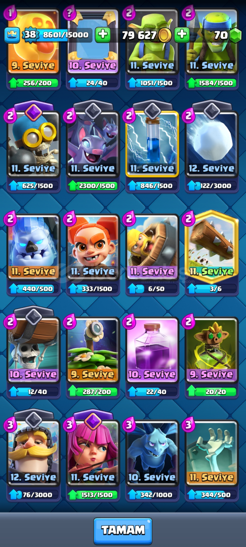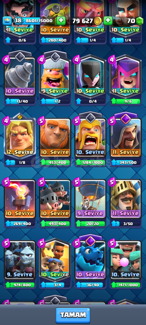 hesap 7 kya yakındır güzel emojiler ve evrimler vardır sadece 4 kart eksiktir ve ayrıyeten 3 evrim taşı valkğre basılmış 3 evrim taşı barbarlara 3 evrim taşı kartopuna ve 3 evrim taşı iskeletlere basılmıştır hesap tek bağ mail dir telefon bağı yoktur alana hayırlı olsun