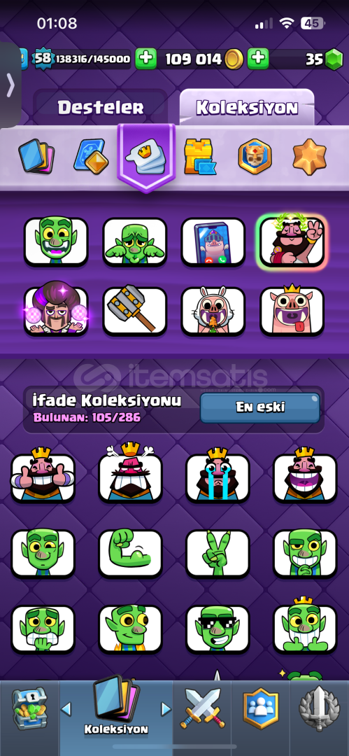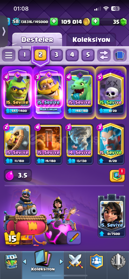 4 sezon pas açılmıştır aglayan golbin emotu parayla alınmıştır bu sezon nihai Olmuştur isim yenileme 1500 taş istiyor bilginize pazarlık yapılır 1 tane 16sv. 10 tane 15sv. 26 tane 14sv kart vardır
