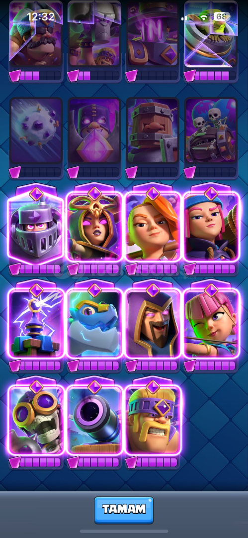 81 emoji Tüm kartlar açık 20 efsanevi kart 2 evrim parçası 600 taş 200 k altın 2 kral kulesi full 36 full kart ...