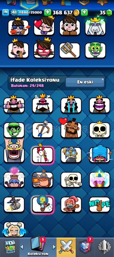 Sıkıldığımdan Dolayı satıyorum Pazarlık yapılır 7600 kupa 4 tane Şampiyon kart eksik onlar hariç tüm kartlar var aşağıya yazıcam olmayanları kendi yaptığım ana destenin leveli 7600 kupaya göre yüksek levellidir diğer kartlar da yeterince leveli var tüm ifadeler fotoğrafta var Başlıktada yazdığı gibi indirim yapabilirimEvrimi olan kartlar:Evr...
