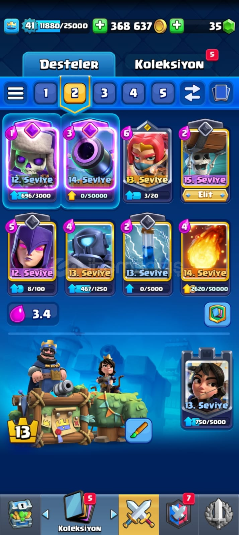 Sıkıldığımdan Dolayı satıyorum Pazarlık yapılır 7600 kupa 4 tane Şampiyon kart eksik onlar hariç tüm kartlar var aşağıya yazıcam olmayanları kendi yaptığım ana destenin leveli 7600 kupaya göre yüksek levellidir diğer kartlar da yeterince leveli var tüm ifadeler fotoğrafta var Başlıktada yazdığı gibi indirim yapabilirim
