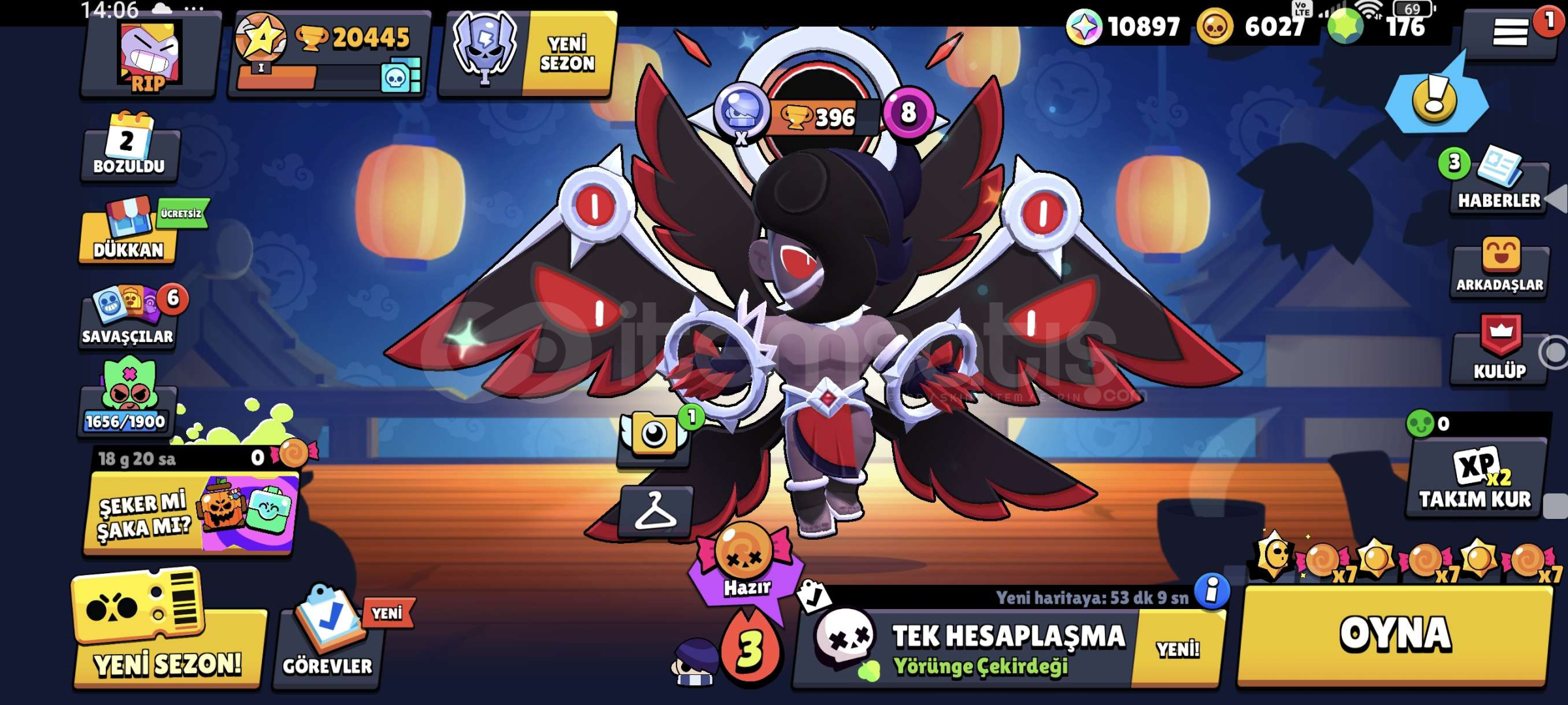 Brawl Stars hesabı mevcuttur 67 tane karakter mevcuttur