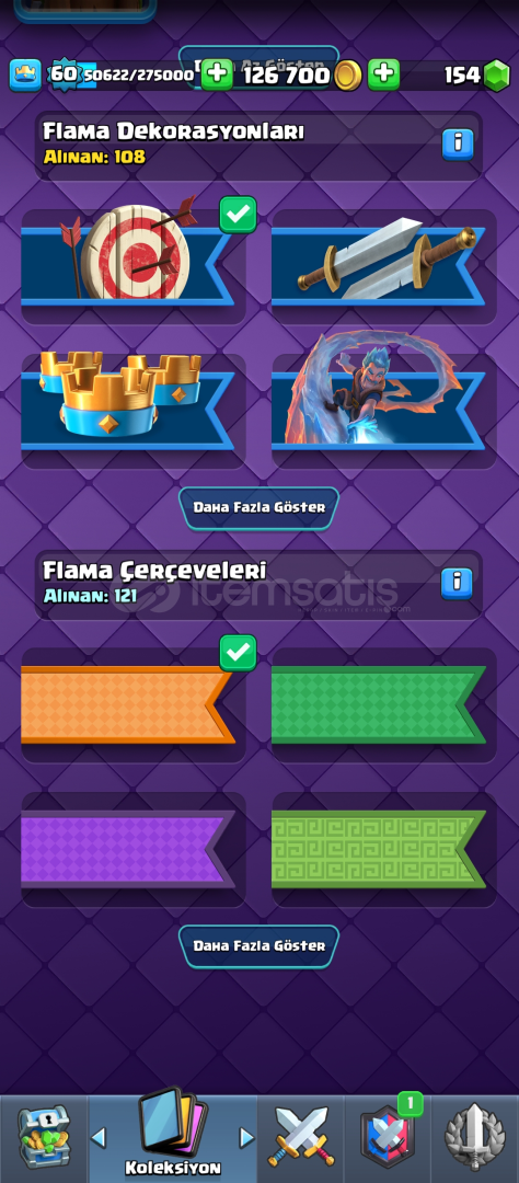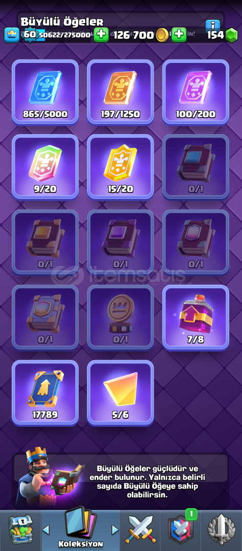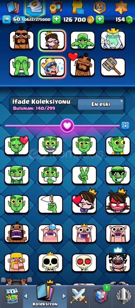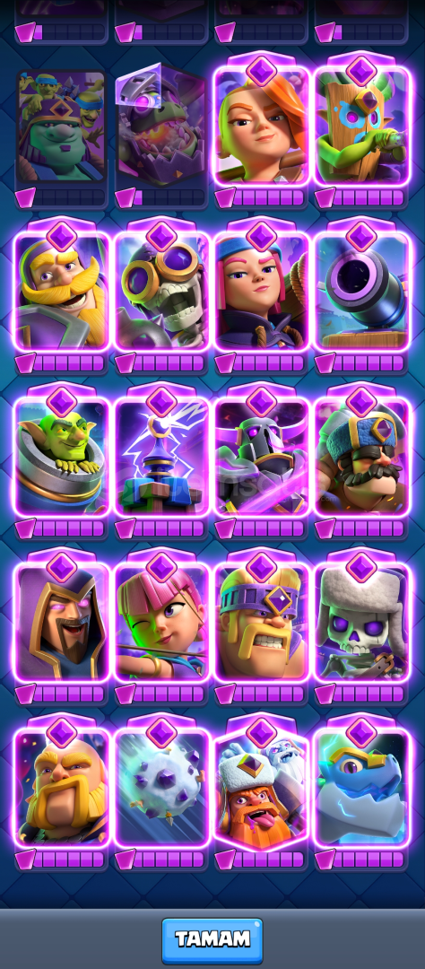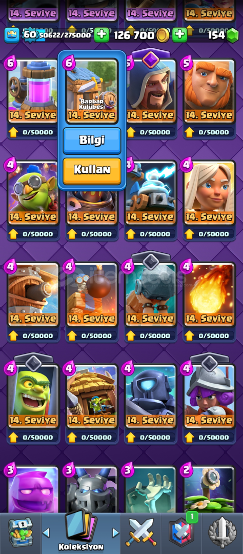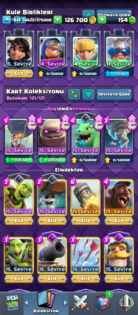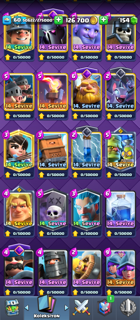 Bütün Ender ve sıradan kartlar 14 ve üstü 85'ten fazla kart 14 ve üstünde. Görseller mevcut zaten toplam 18 Evrim var 140 adet emote var aklınıza takılan birşey olursa mesaj yazabilirsiniz.