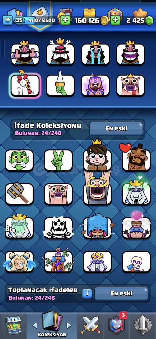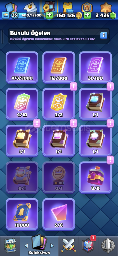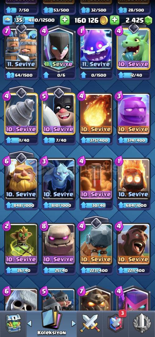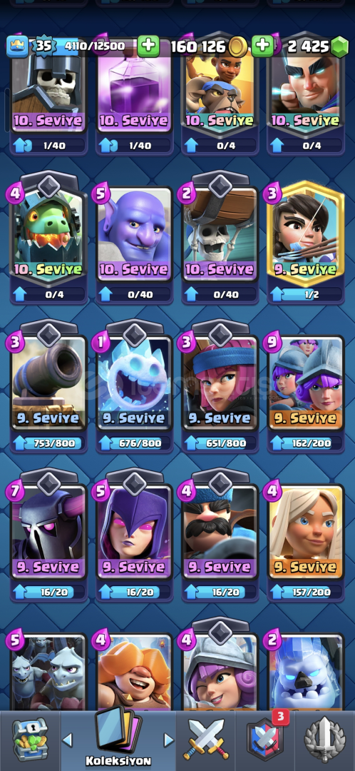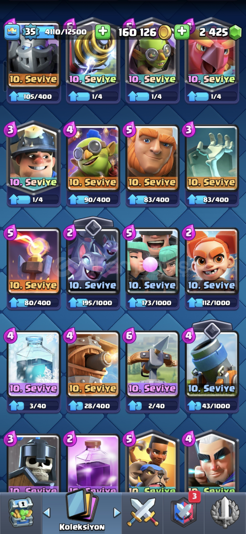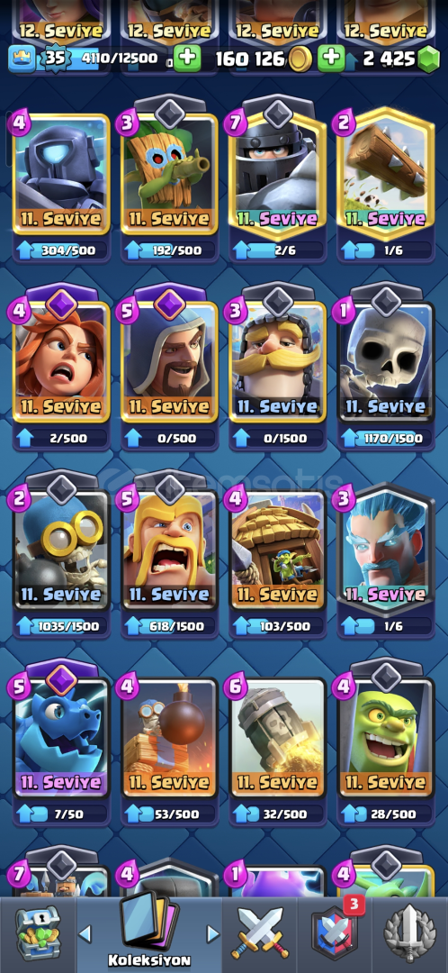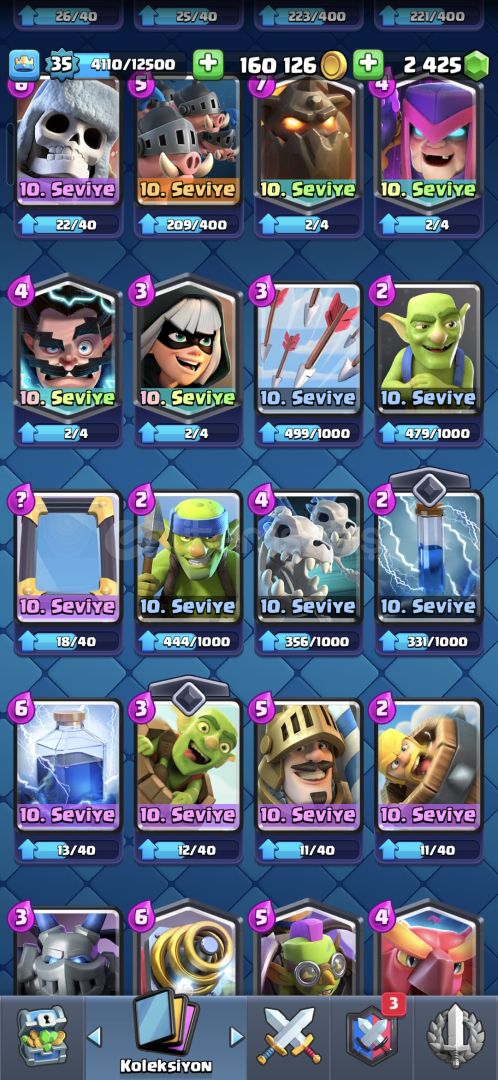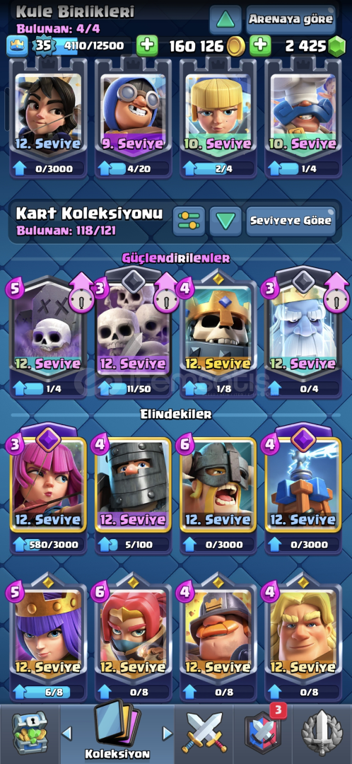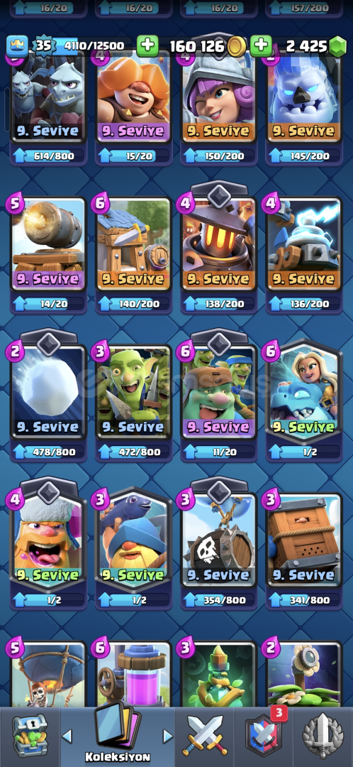 -HESAP 35LV VE 6300 KUPADIR-2500 YEŞİL TAŞ VARDIR-118 ADET SAVAŞÇI KARTI VARDIR-5 ADET EVRİMLİ KARAKTER İLE BERABER 5 ADET EVRİM KARTI BULUNUR-5 ADET EVRİM 4 ADET BÜYÜLÜ KİTAP-8/8 KART GÜÇLENDİRME İKSİRİ-ELİT JOKER KART-24 ADET EMOJİ BULUNURFİYATTA MAKUL SEVİYEDE PAZARLIK KABUL EDERİM ALAN KİŞİYE HAYIRLI OLSUN ŞİMDİDEN