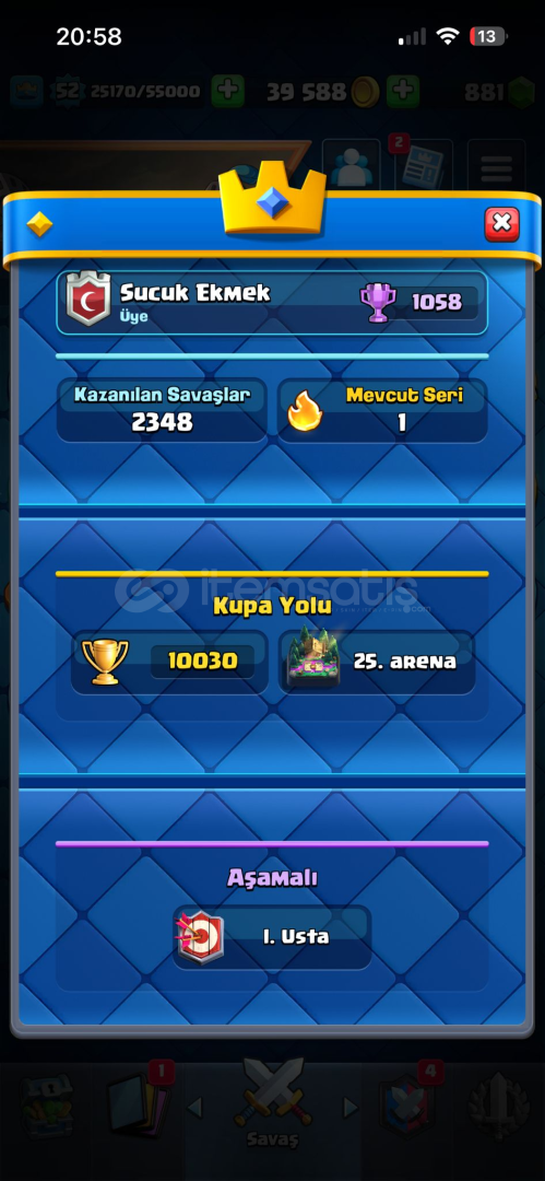 MERHABA! 👋 Clash Royale arenasında zaman kaybetmeden zirveden başlamak isteyenler için emek verilmiş, dolu dolu bir hesap satıyorum. İçerisindeki evrimler ve yüksek seviye kartlar sayesinde her türlü desteyi kurup rakiplerinize karşı üstünlük kurabilirsiniz.