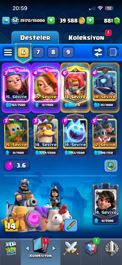 • ⚔️ 14 Adet MAX KART (14. Seviye): Sadece elitler değil, destenizi destekleyen 14 farklı kart daha 14. seviyededir. Klan savaşlarında ve lig maçlarında çok rahat edersiniz.