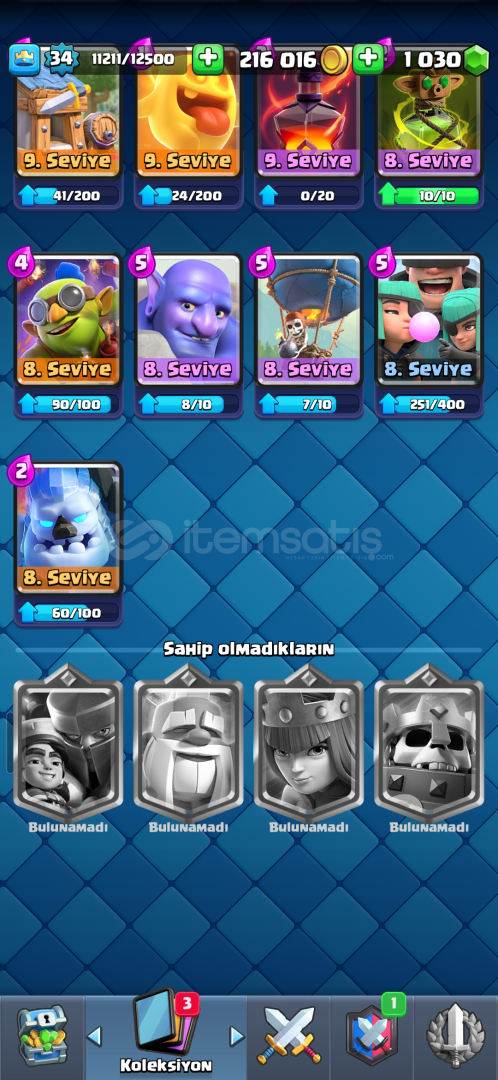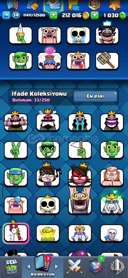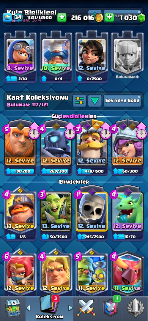 ⭐️6700 KUPA/18. ARENA⭐️⭐️117 KART⭐️⭐️Yüksek Seviyeli Mezarlık ve binici deprem destesi⭐️⭐️34 SEVİYE/12.KULE SEVİYESİ(35e az kaldı)⭐️⭐️210K ALTIN⭐️⭐️1000 ELMAS⭐️⭐️32 EMOJİ VE 9 TOXİC EMOJİ(Tokmak Emojisi ve SeeOk Emojisi)⭐️⭐️İLanı Ald&#...
