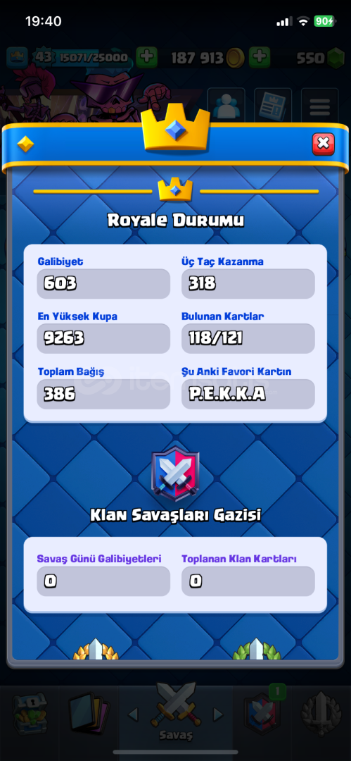 Hesap Sadece Supercell Idye Bağlı Olmakla Beraber Dart Goblin Ve Rün Devi Passı Alınmıştır,Ayrıca İsim Değiştirmek İçin De 500 Taş Hesabın İçinde Mevcuttur. Alan Kardeşime Hayırlı Uğurlu Olur İnşallah…