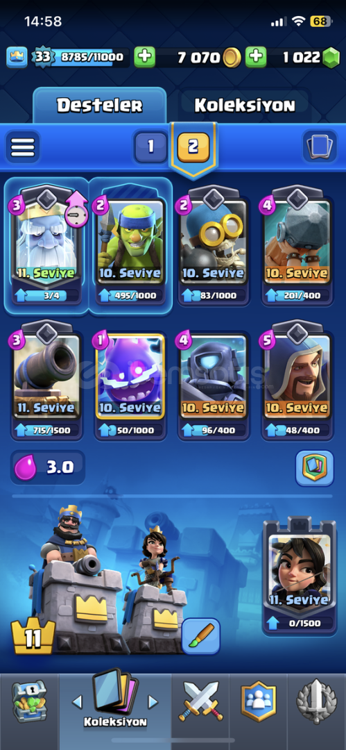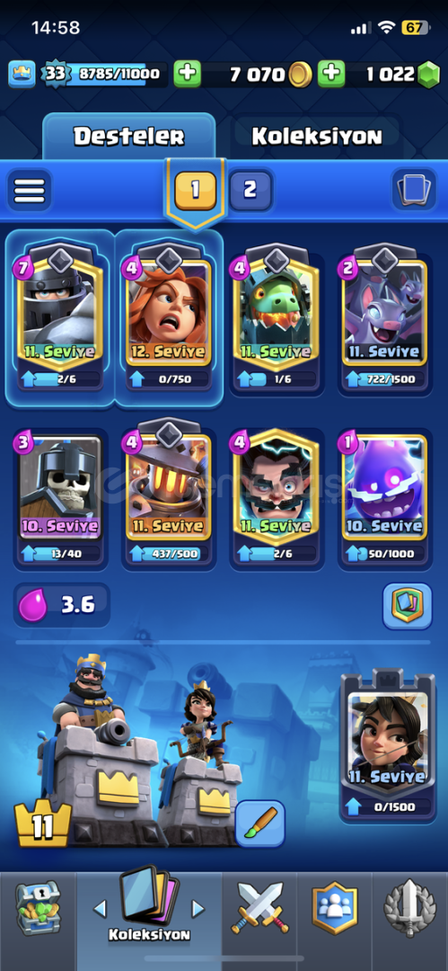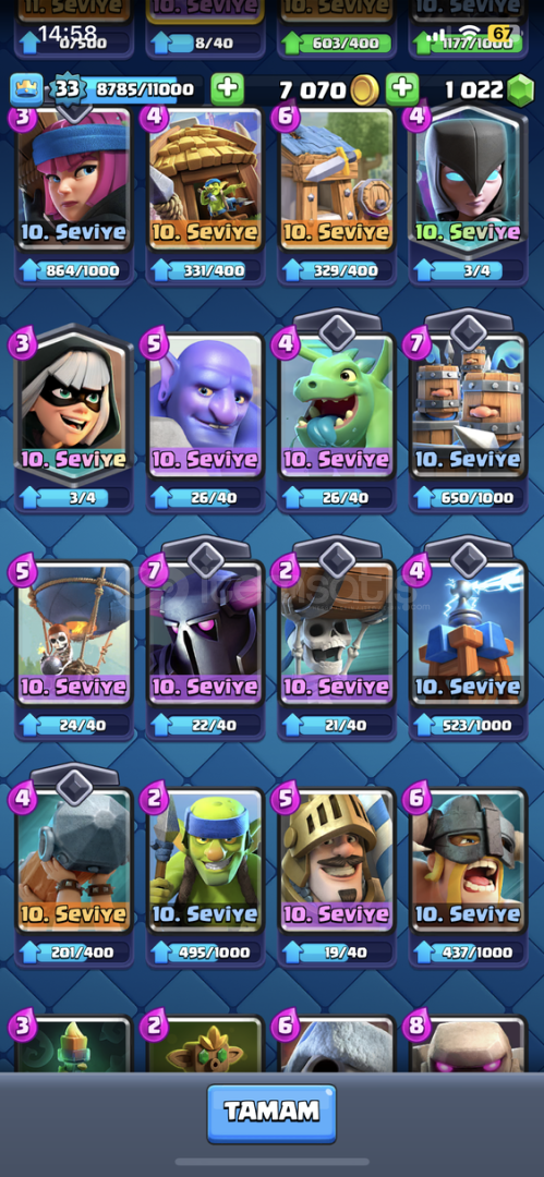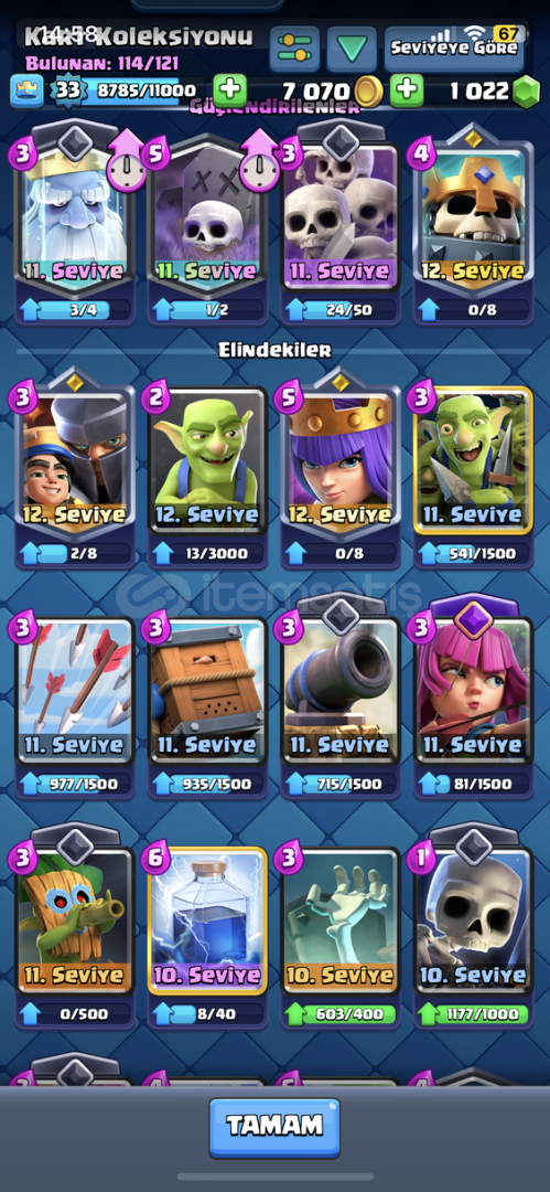 📜 Açıklama:Clash Royale hesabımı satıyorum. Hesap aktif olarak oynanmış ve birçok kart yüksek seviyeye getirilmiştir. Kupası ve kaynaklarıyla hazır şekilde devredilecektir.Hesap Özellikleri:👑 Seviye: 33🏆 Kupa: 6500💰 Altın: 70.913💎 Taş: 1022🎴 Birçok efsanevi ve güçlü deste hazırPass Royale ilerlemesi mevcutKartların ço...