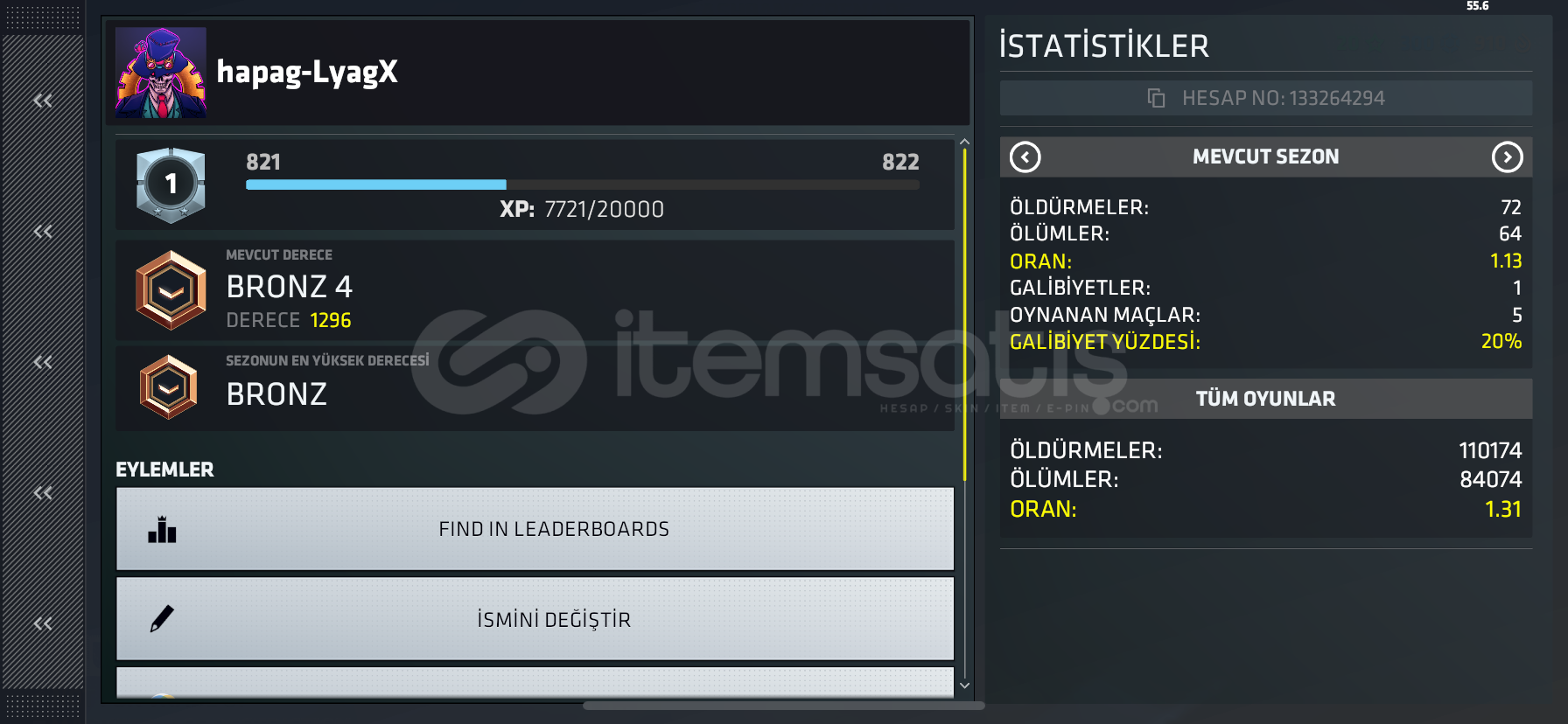 oyunu eskisi gibi çok oynamadığım için satıyorum dolu bir hesap fiyatta pazarlık yapmak isteyen yapabilir i&cce...