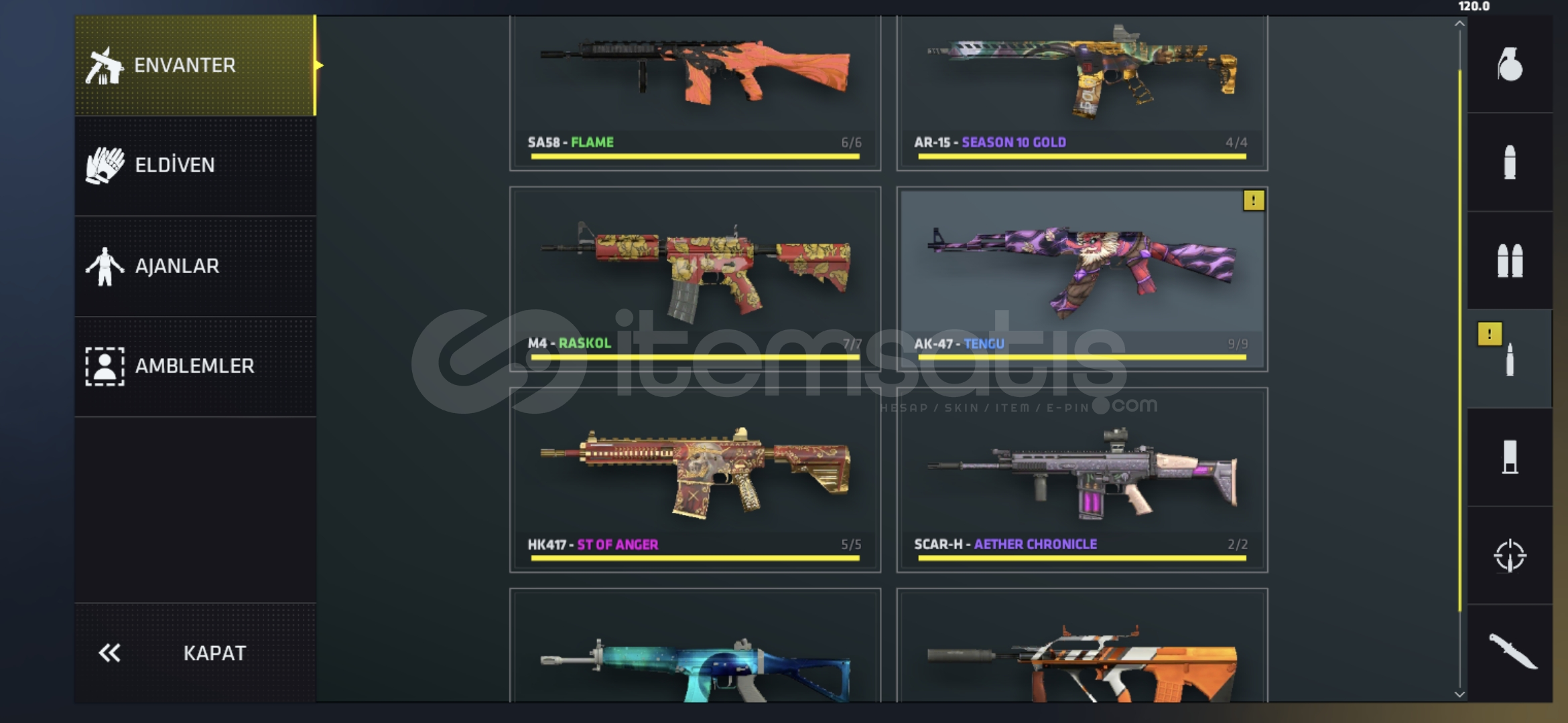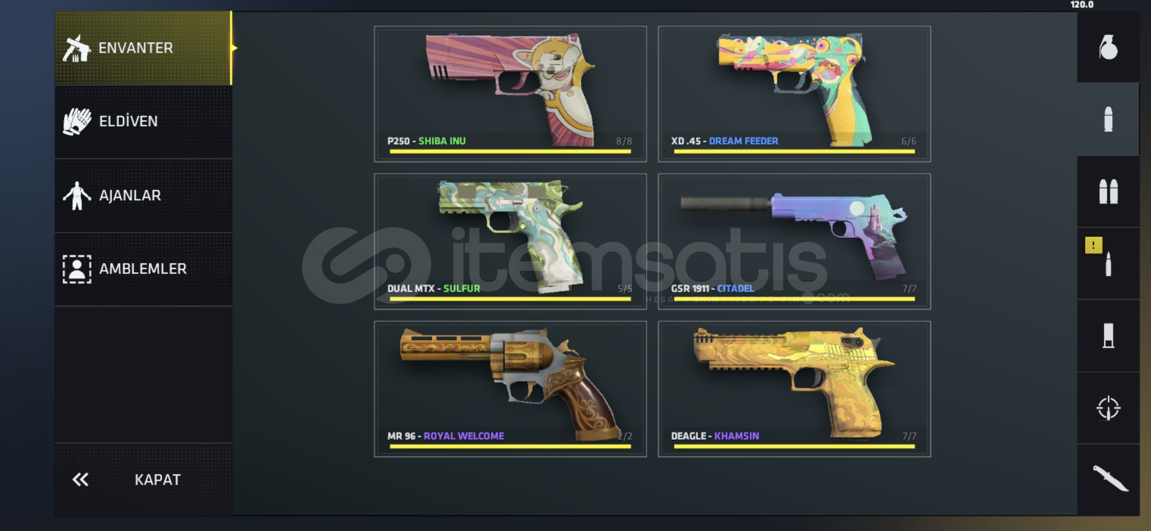 Eldiven ve bıçak var her silahta 3 4 tane skin var hızlı satılık cops hesabı pazarlık olur