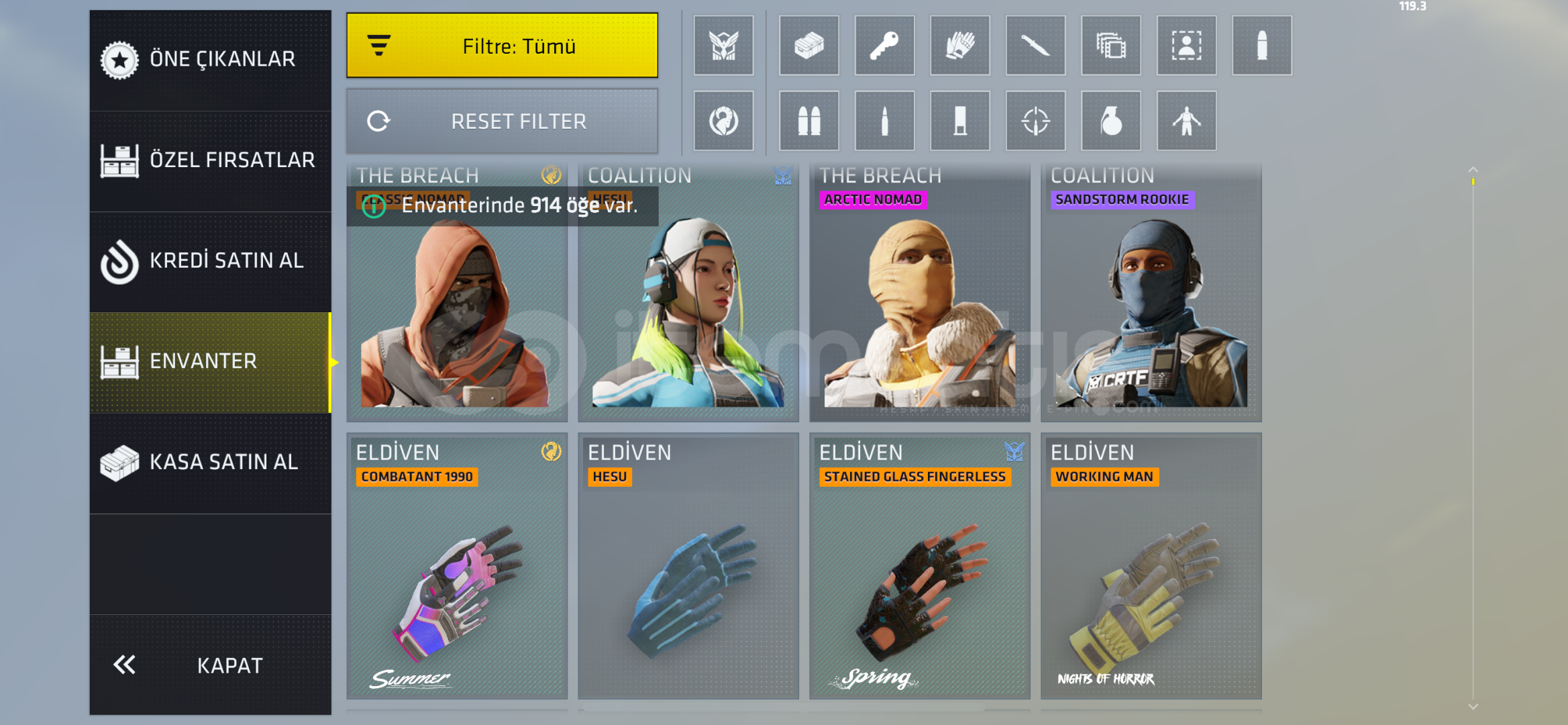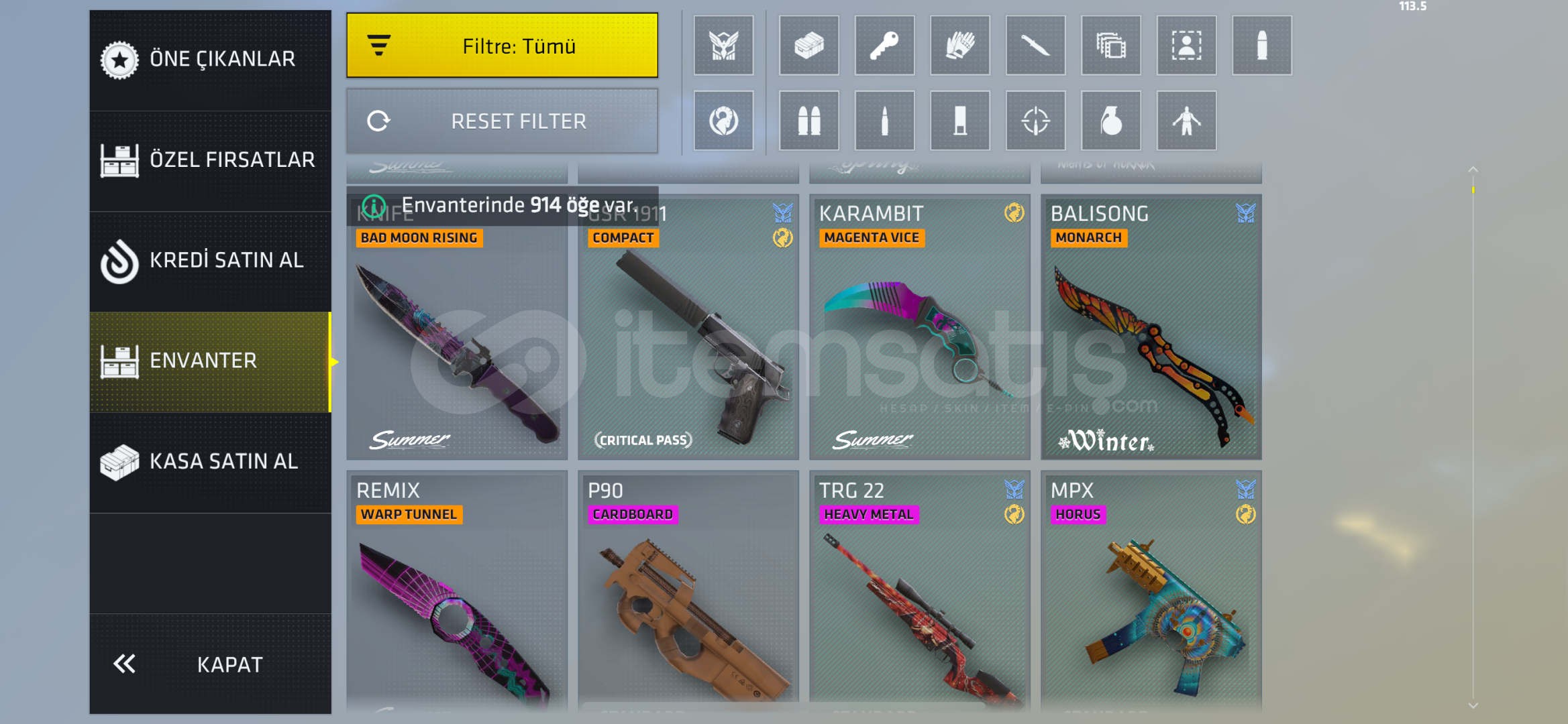 Hesapta animasyonlardan değerli olanların hepsi var ,Eldivenler ve bıçaklarda çok pahalı hesabın değerli yaklaşık 120k kredi