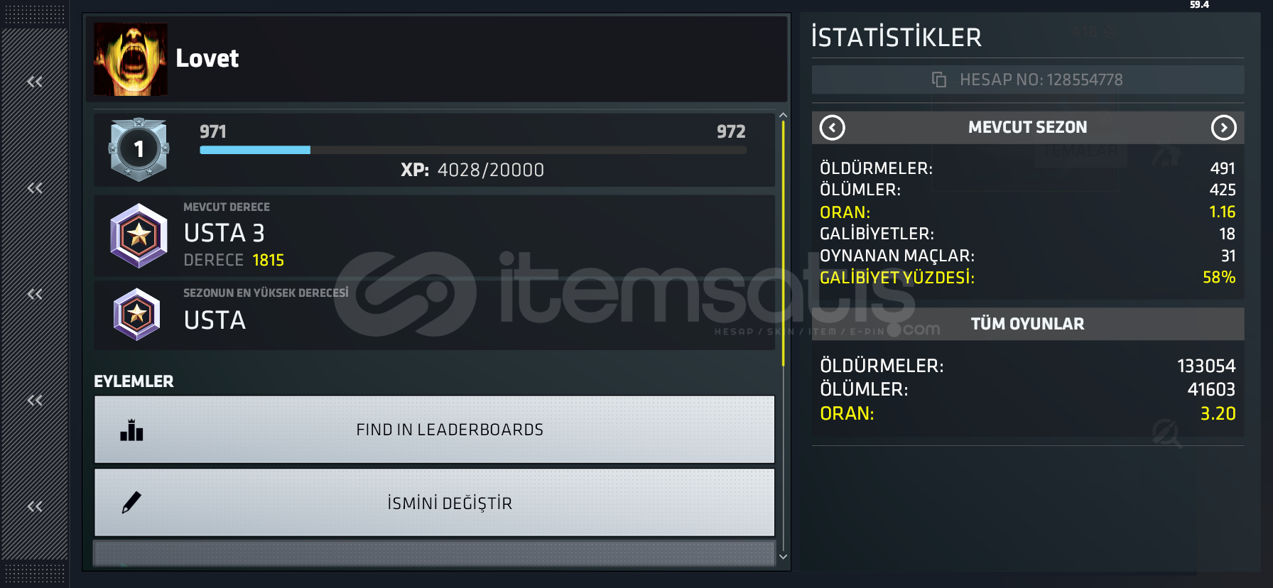 10 yıllık hesapelite düşmemiş son sezon master kaldıcihazımı sattığım için satıyorumciddi alıcılar yazsın fiyat cok uygun30 k envanter + daggersnamıdeğer littlefinger ve Necrospark benim allaha emanet olun alıcısına hayırlı olsun