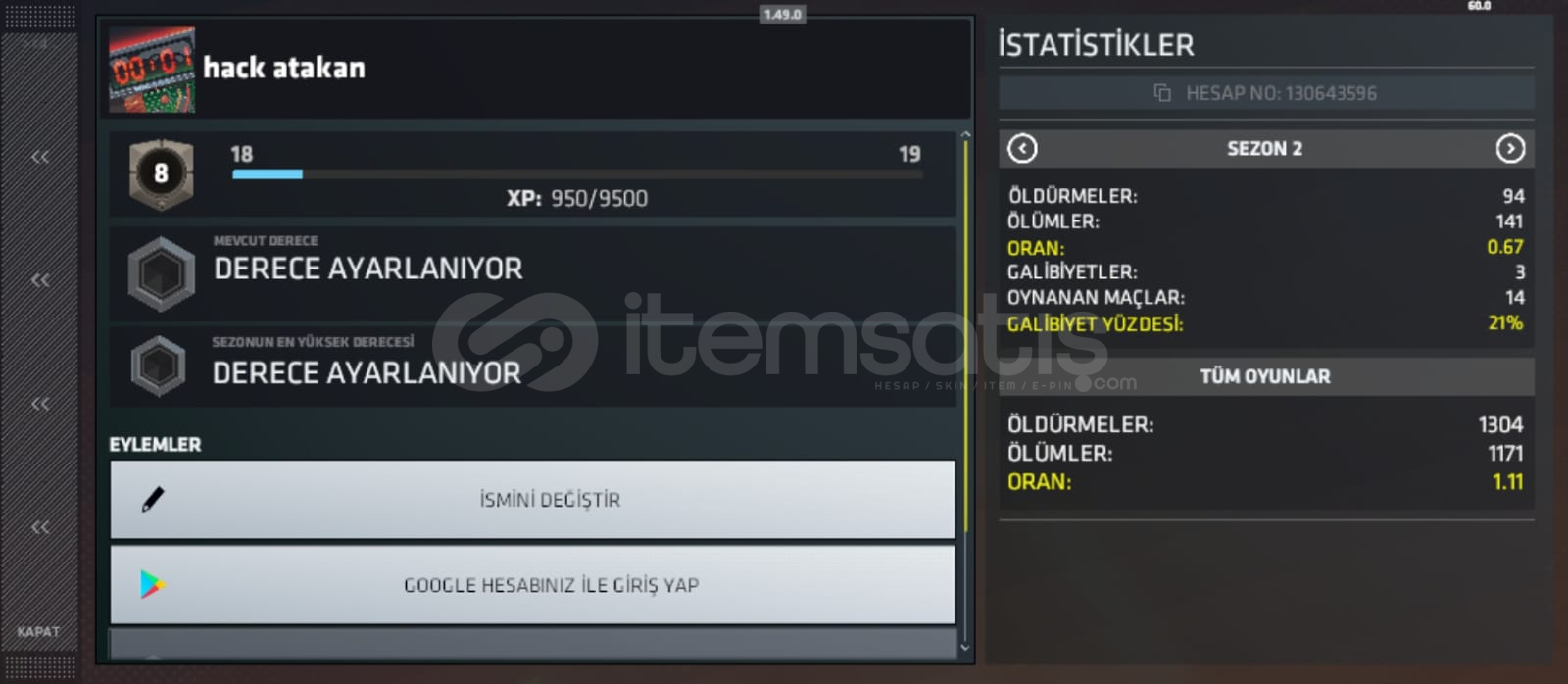 Hesap Sezon 2 de (2018) de kurulmuşturİçinde 1112 kredi vardırİsim değiştirme hakkı vardır11 tane skin vardır