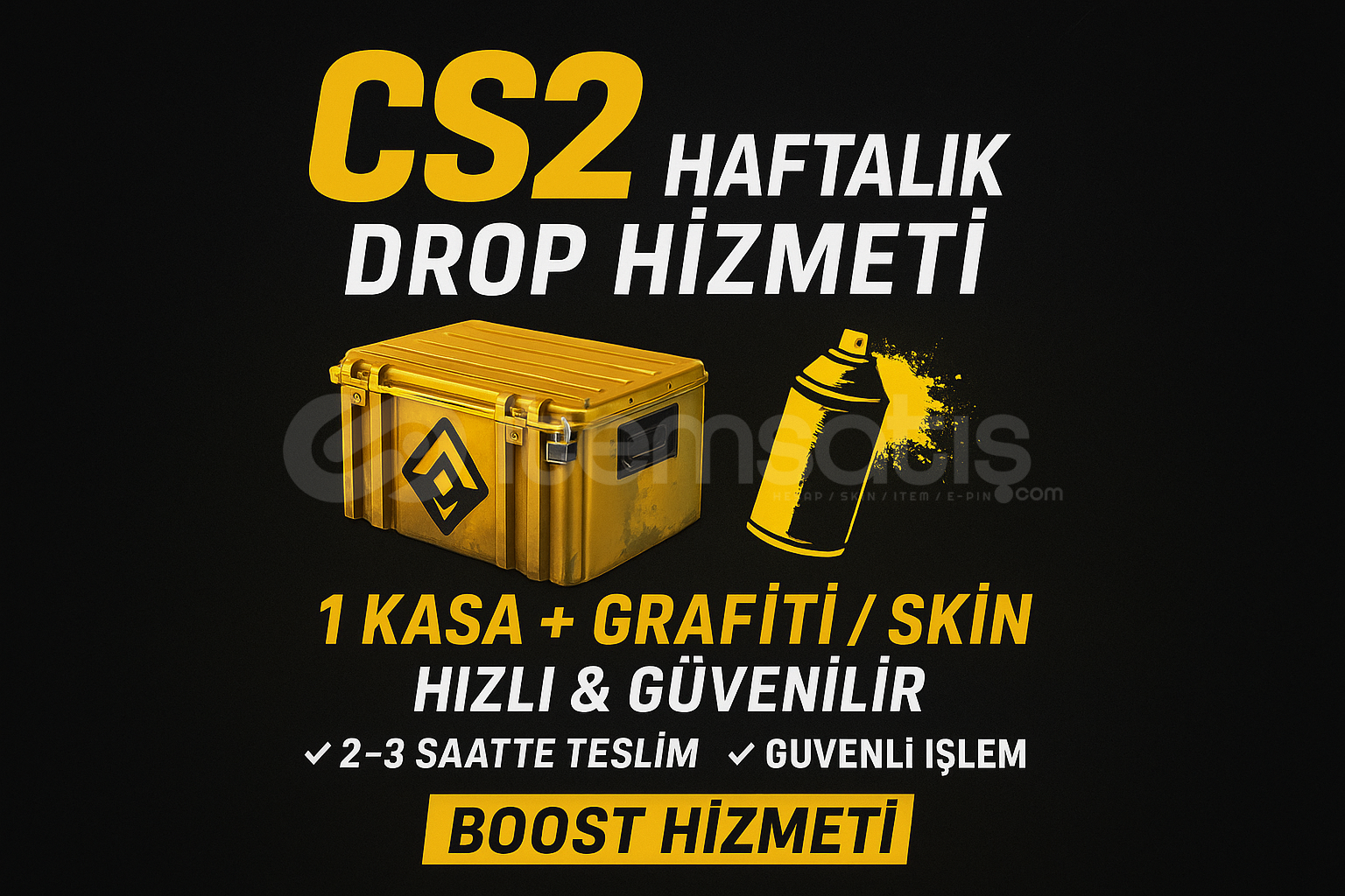 Her Çarşamba haftalık drop yenilenir ve 1 kasa + graffiti veya skin kazanma hakkı açılır. Ancak uzun süre maç atıp uğraşmak istemiyorsanız tam size göre bir hizmet sunuyoruz!