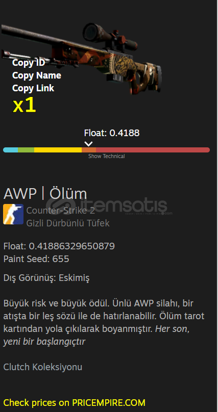 AWP|Mortis Eskimiş Floatı 0.4188 Patern Seed 655