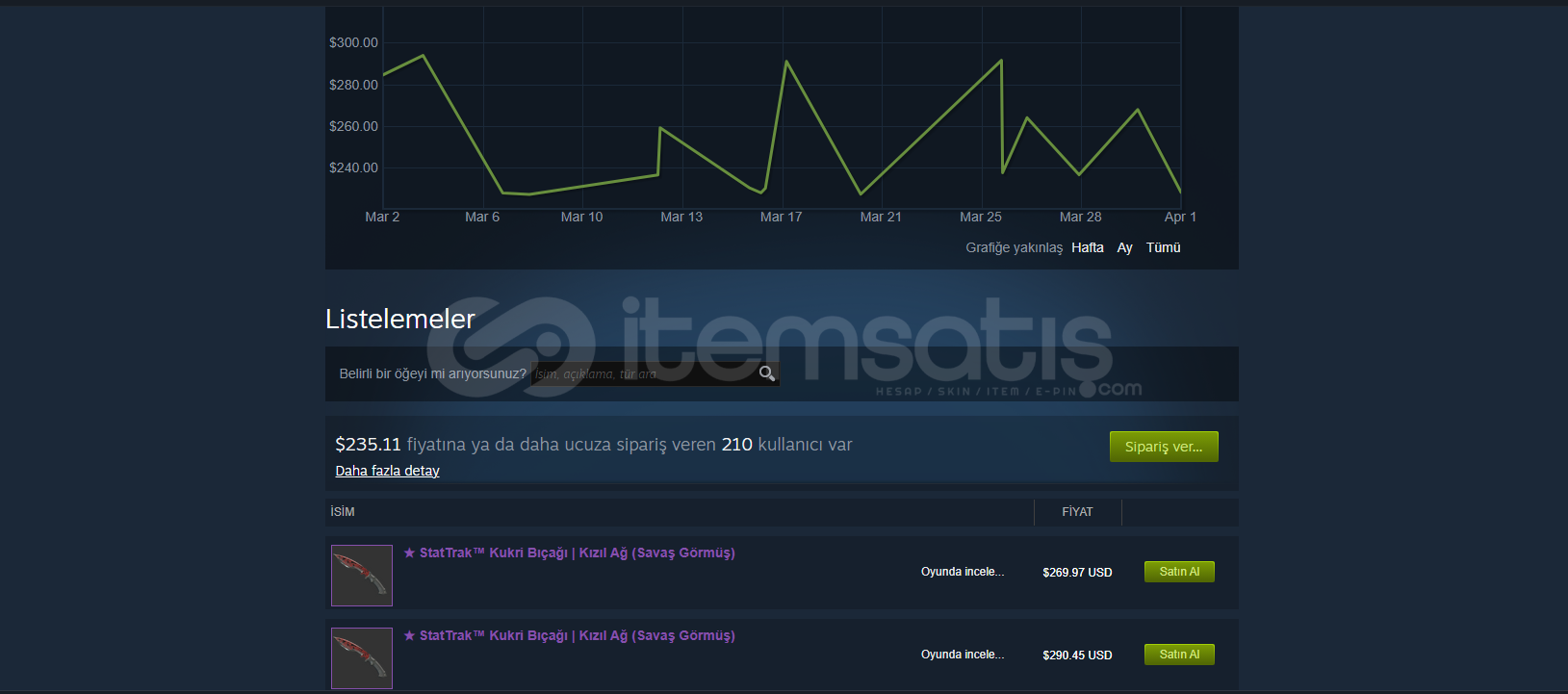 STEAMDA 270 DOLAR CİVARI FLOATI ÇOK İYİ KIPKIRMIZI KUKRİ ACİL SATILIK