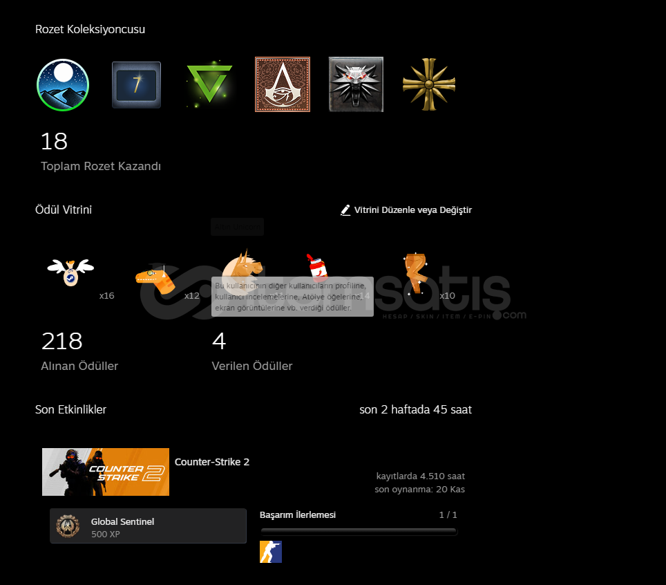 PROFİL ÖDÜLLERİToplam Alınan: 218 (77.700 Steam Puanı)
