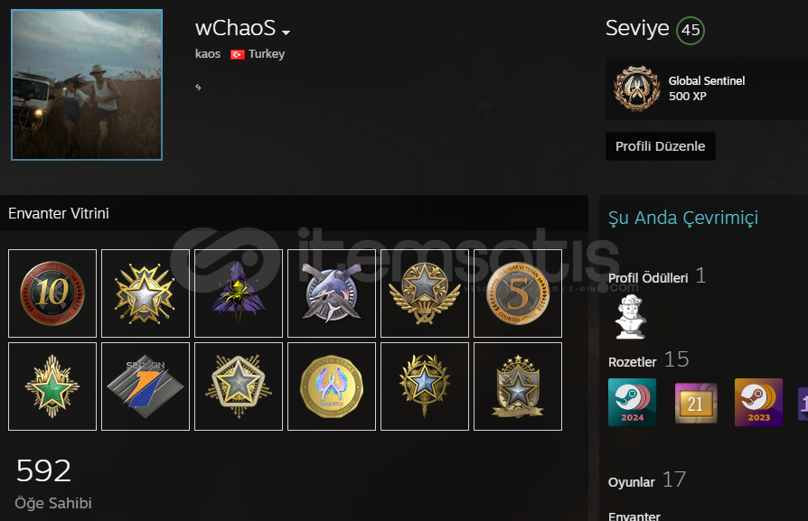 12 rozet vardır 2500 saati vardır faceit 6seviye hesap tertemiz 1. sezon rankı 20k gibi birşeydi envanterde yaklaşık 25 dolarlık skin vs var ilk mail mevcut değil hesap çok eski ama sağlam