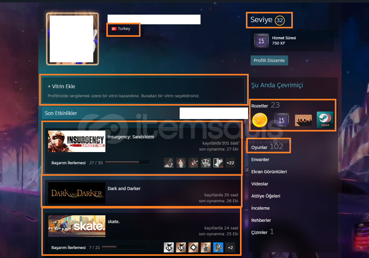15 MADALYALI 29 LV RUST PUBG PLUS DAYZ RED DEAD 2 42.000 TL STEAM OYUN ENVANTERLİ STEAM LV 32MADALAYA:2016 2017 ÇİFT 2018 ÇİFT 2019 2020 HİZMET MADALYASI GÜMÜŞ FİRAR OPRS JETON KANTAZI OPRS JETON GÜMÜŞ HYDRA OPRS JETON 10 YIL JETON 5 YIL JETON 1 SEZON JETON BADGE JETON SADAKAT ROZETİWİN:REKABETCİ : WİN YOLDAŞ: WİNPRİME RANK :REKABETCİ:BELİRSİZGÜVEN FAKTÖRÜ:YEŞ...