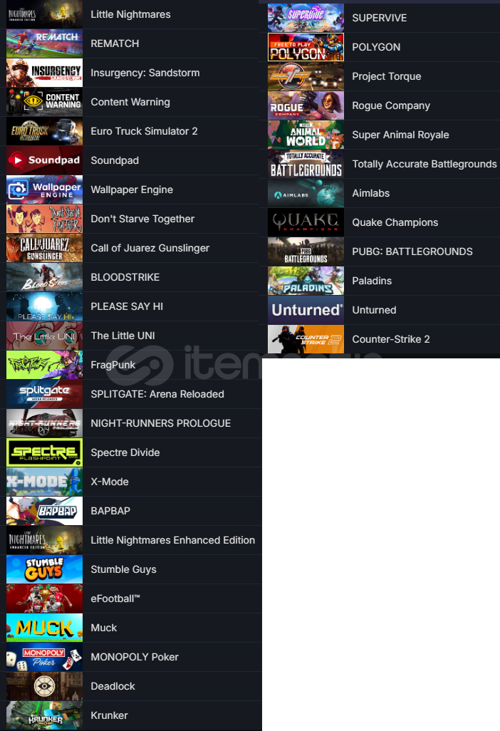 OYUNLAR :CS GO 2 PRİME PUBG PLUS Euro Truck Simulator 2 REMATCH Insurgency: Sandstorm Content Warning Soundpad Wallpaper Engine Don't Starve Together Call of Juarez Gunslinger