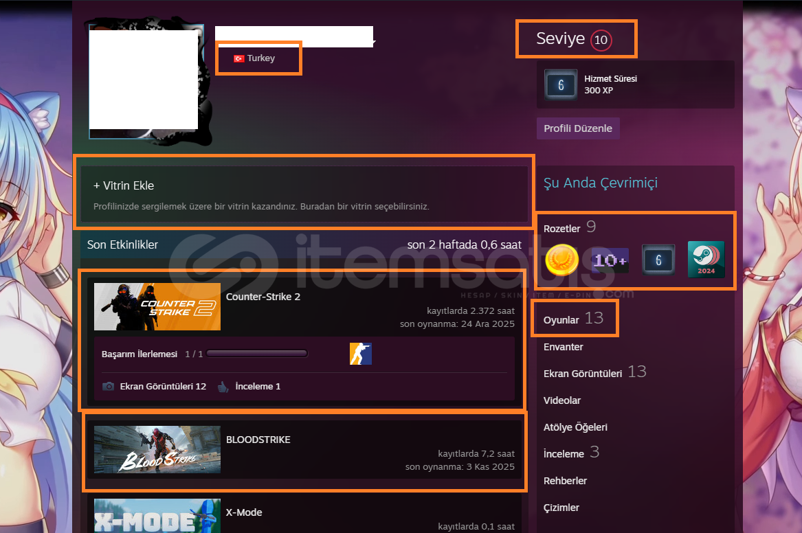 STEAM LV:10 LV ÇİZİM EKLENEBİLİR HAREKETLİ ARKA PLAN ÇERÇEVE VE MİNİ PROFİLLİ
