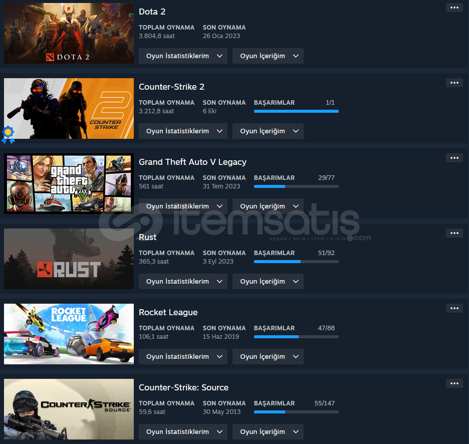 💥 Satılık Steam Hesabı – CS2, Dota 2, GTA V, Rust, Rocket League 💥